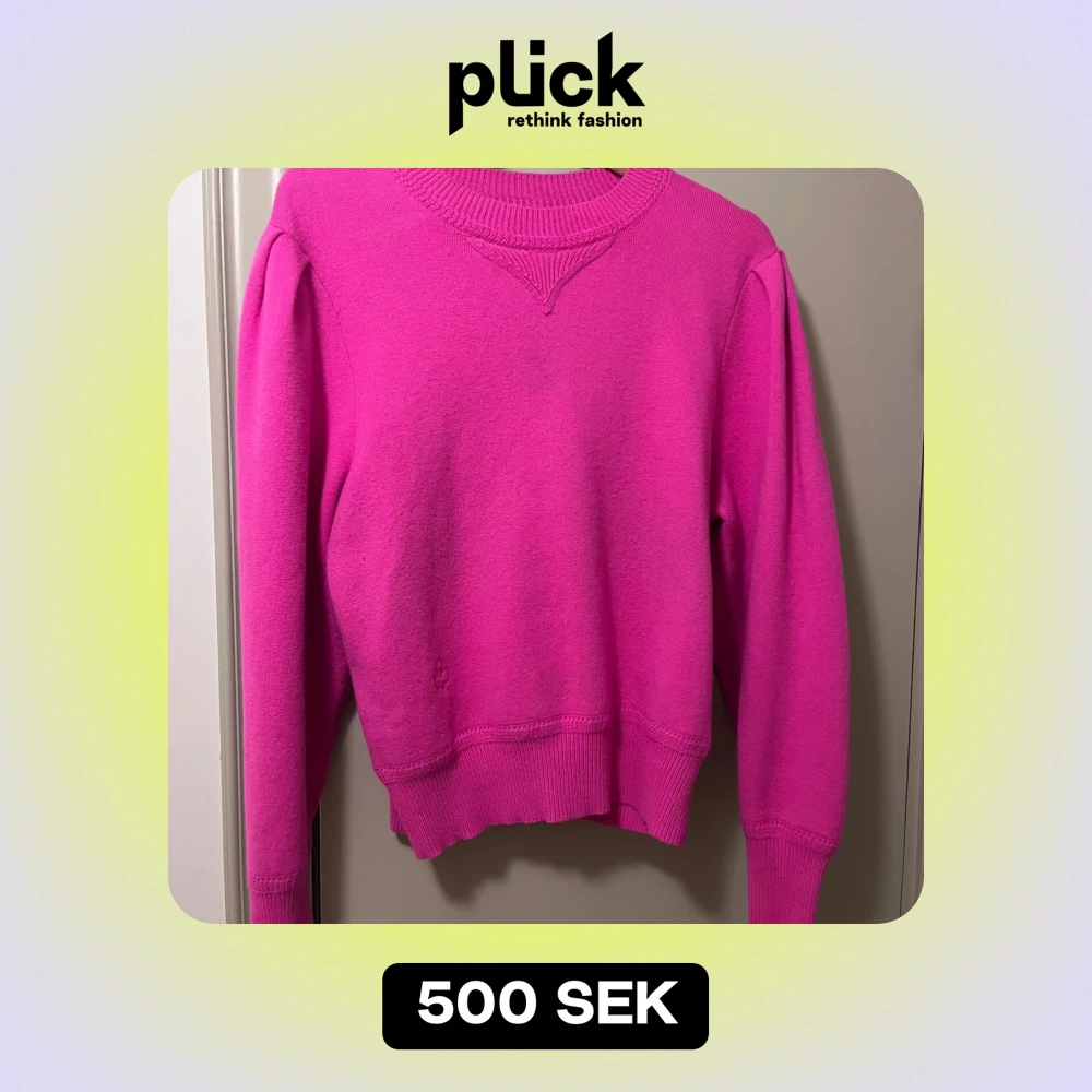 Säljer en superfin rosa tröja från Isabel Marant Etoile i storlek 42. Den är i mycket bra skick förutom en liten fläck på bröstet, se sista bilden, därav lågt pris. Tröjan är långärmad och har en skön passform med ribbade muddar. Materialet är en blandning av bomull och ull, vilket gör den både mjuk och varm. Perfekt för att liva upp garderoben! 💖