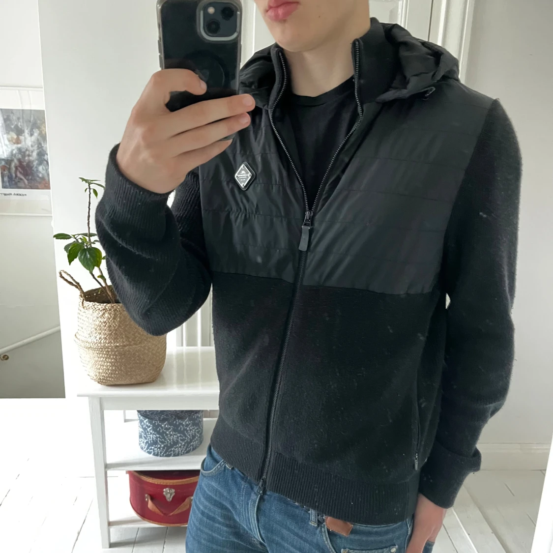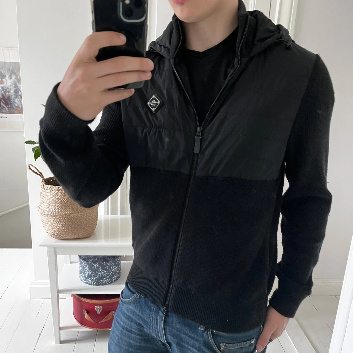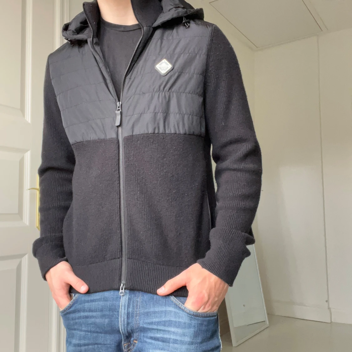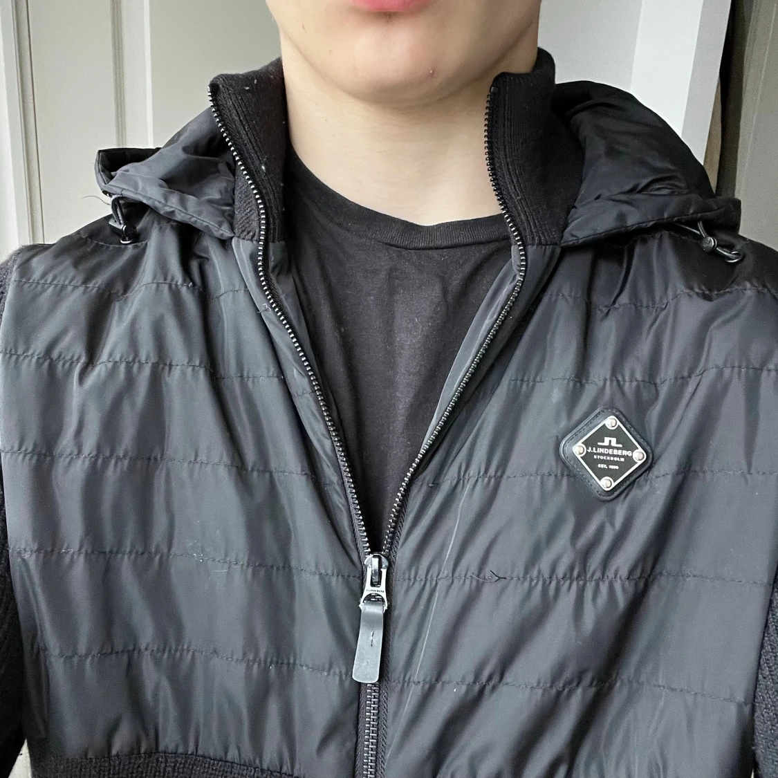 J.Lindberg cardigan svart, inga defekter men är använd. Väldigt tung och bra kvalité, sitter absolut perfekt på mig som är 180,75 kg. Sjukt eftertraktad! Kom med frågor, storlek M btw