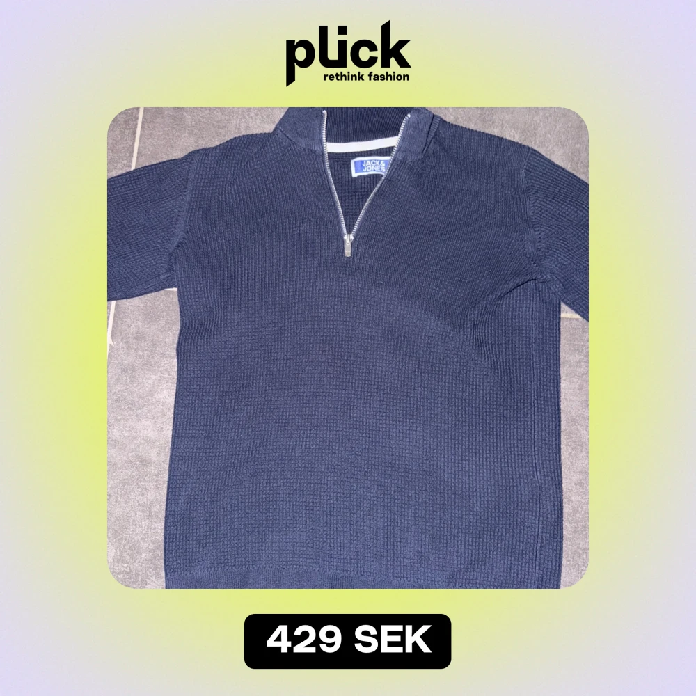 Säljer en snygg mörkblå tröja från Jack & Jones i storlek 152. Tröjan har en dragkedja vid halsen och är perfekt för kyligare dagar. Den är i bra skick och passar både till vardags och lite finare tillfällen. Perfekt för höst och vinter!