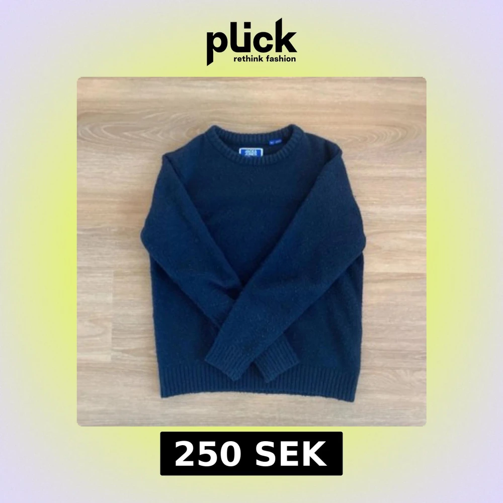 Mysig mörkblå stickad tröja från Jack & Jones med rund halsringning och ribbade muddar. Perfekt för kyliga dagar och enkel att matcha med jeans eller chinos.