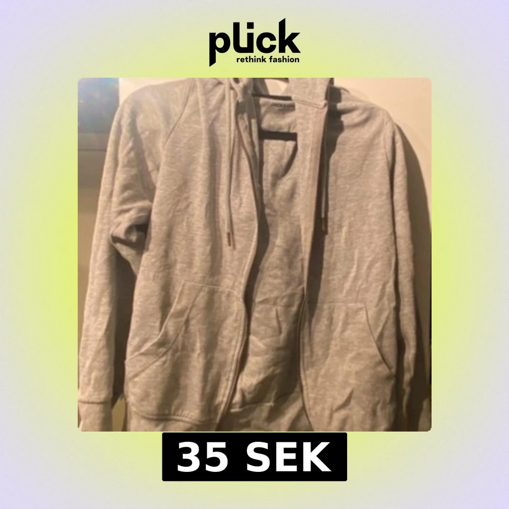 Säljer en stilren grå hoodie från Jack & Jones Essentials. Den har en dragkedja framtill och praktiska fickor. Perfekt för en avslappnad look. Passar bra till både jeans och joggers.