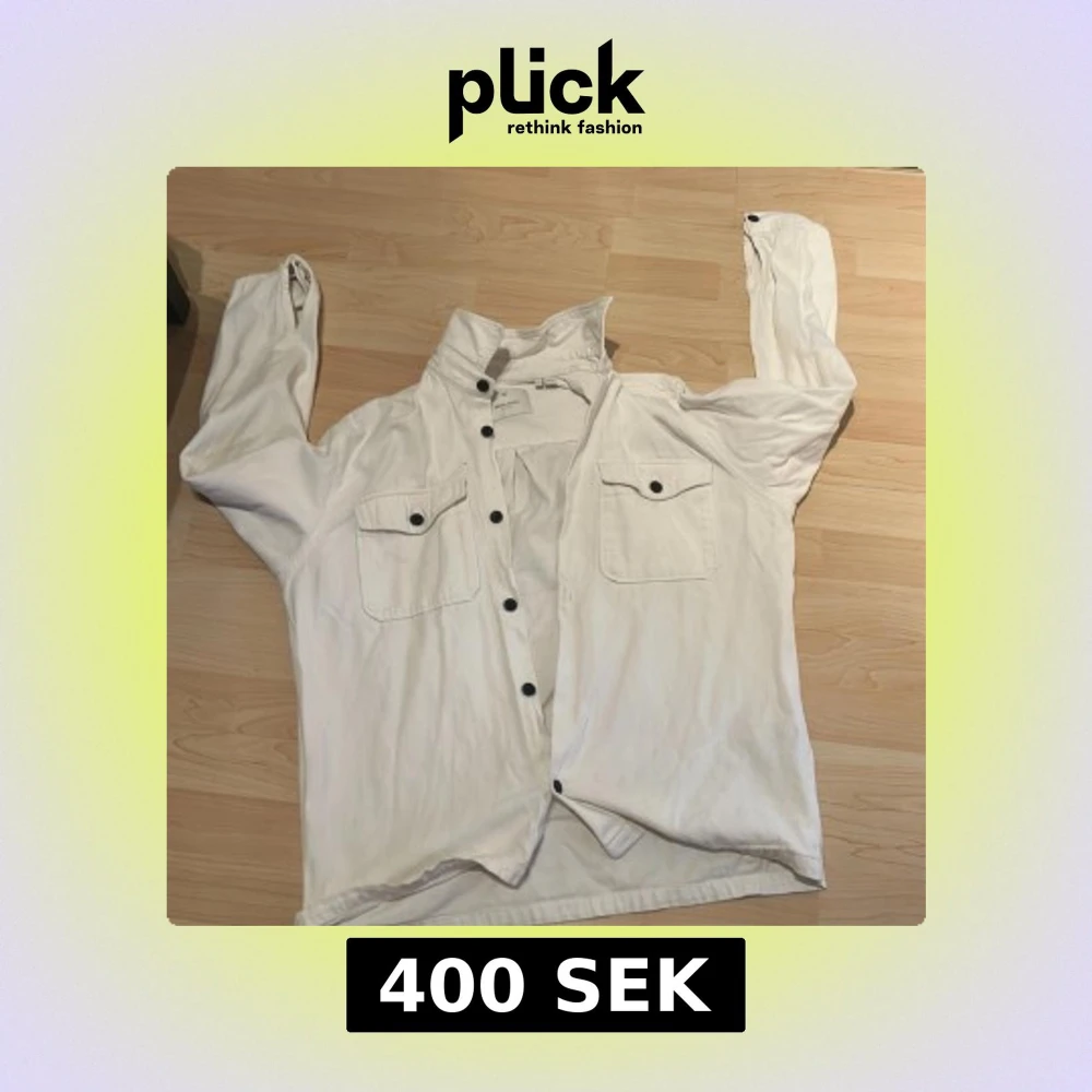 Vit overshirt från Jack and Jones med svarta knappar och två bröstfickor med lock. Skjortan har klassisk krage och lång ärm, perfekt för lager-på-lager. Tillverkad i mjuk bomull för en avslappnad vibe. Har m vanliga tröjor så den passa lika bra till dd med