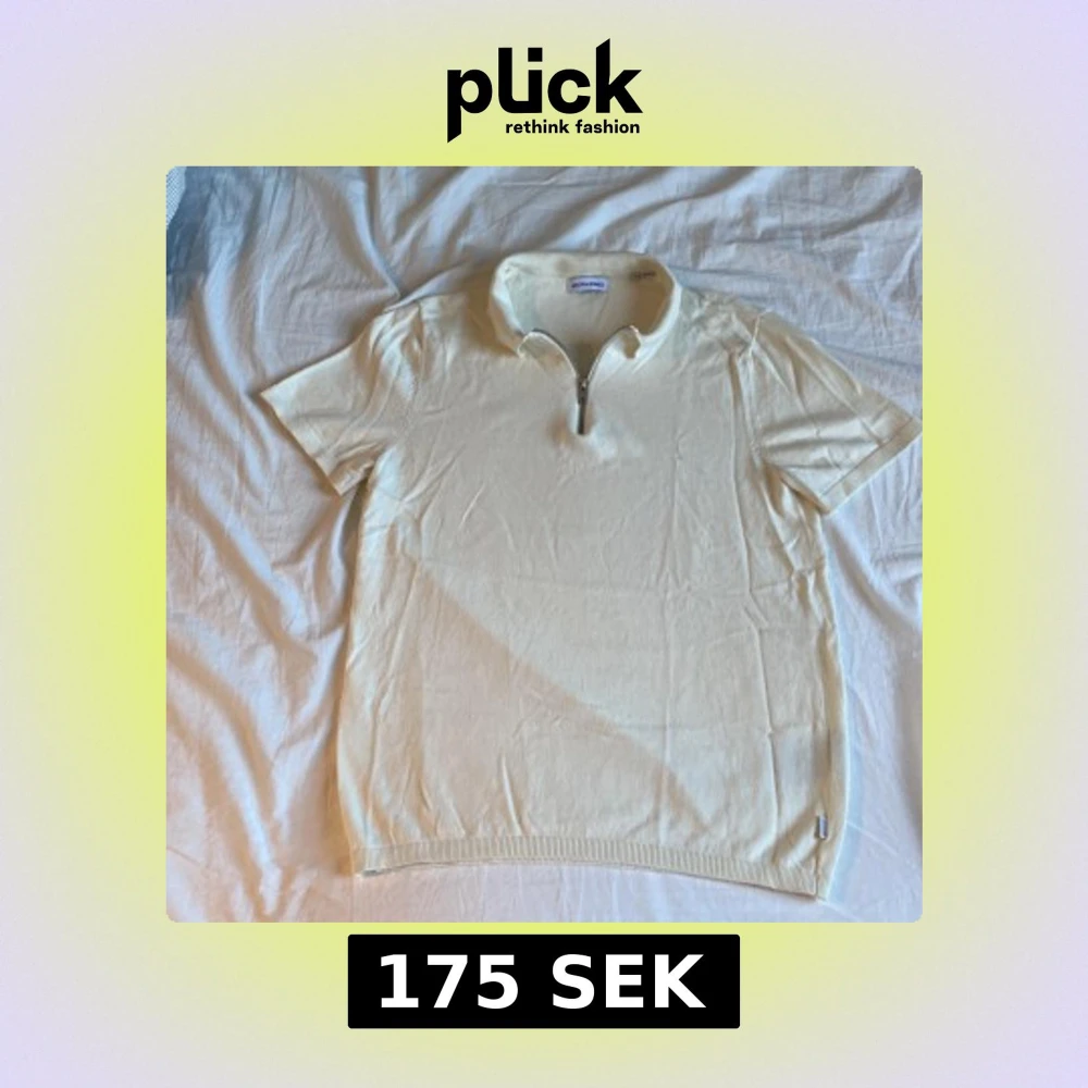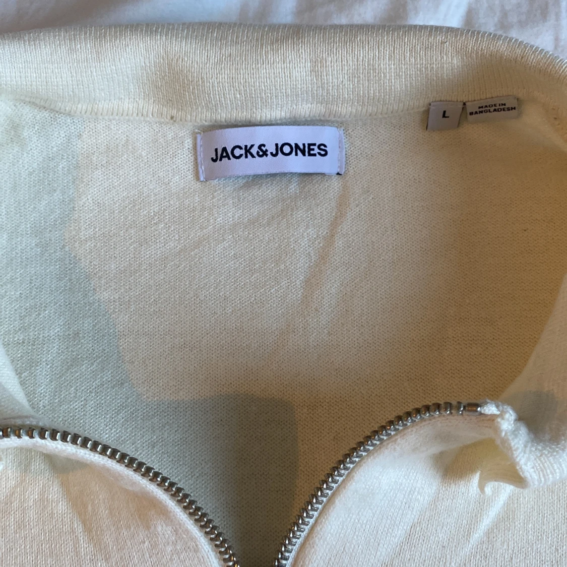 Säljer en stilren beige pikétröja från Jack & Jones. Tröjan har korta ärmar och en dragkedja vid halsen för en modern look. Perfekt för en avslappnad stil.