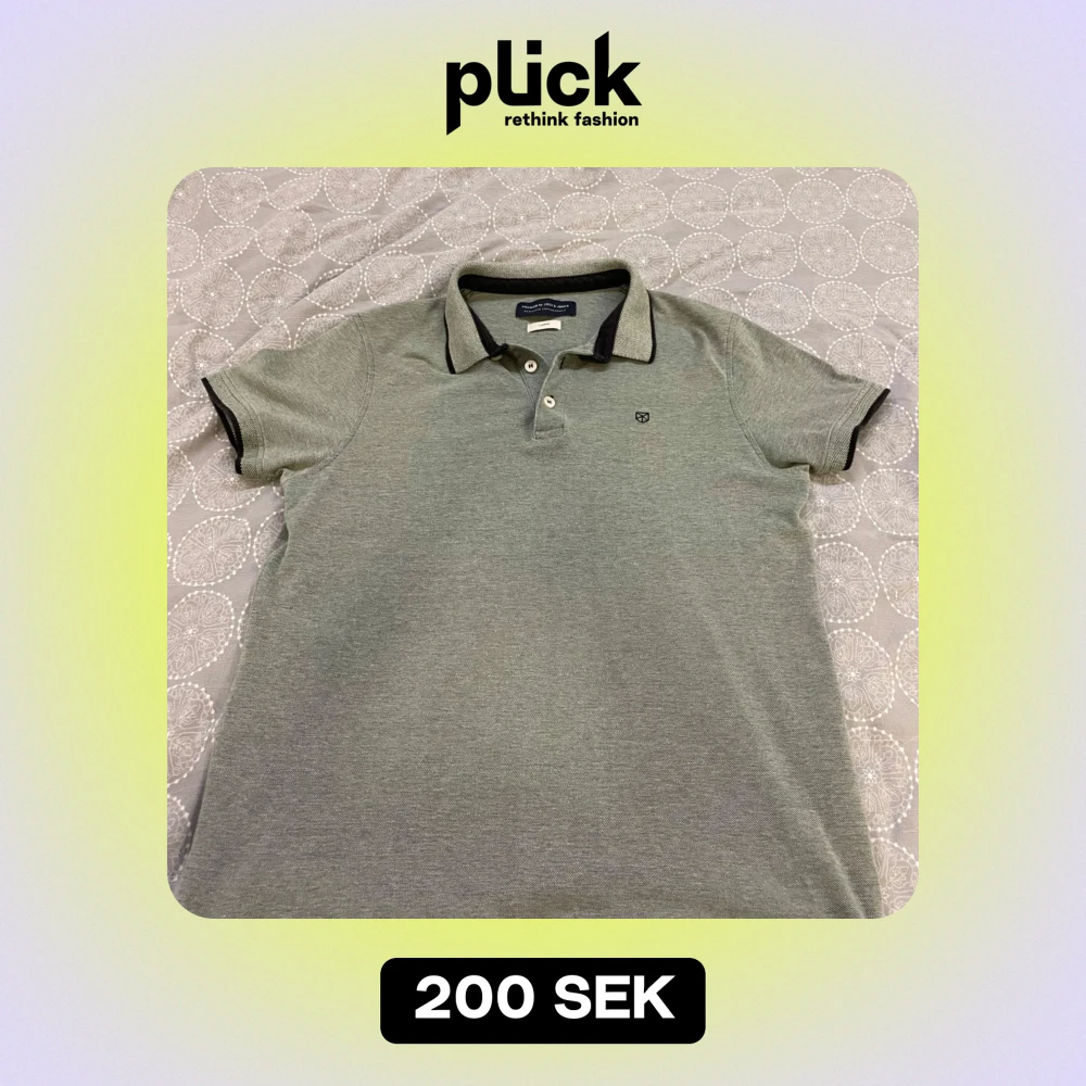 Säljer en stilren grå pikétröja från Jack & Jones i storlek L. Tröjan har en klassisk krage med knappar och en liten logga på bröstet. Perfekt för både vardag och lite mer uppklädda tillfällen. Skön och enkel att matcha med det mesta! 🖤