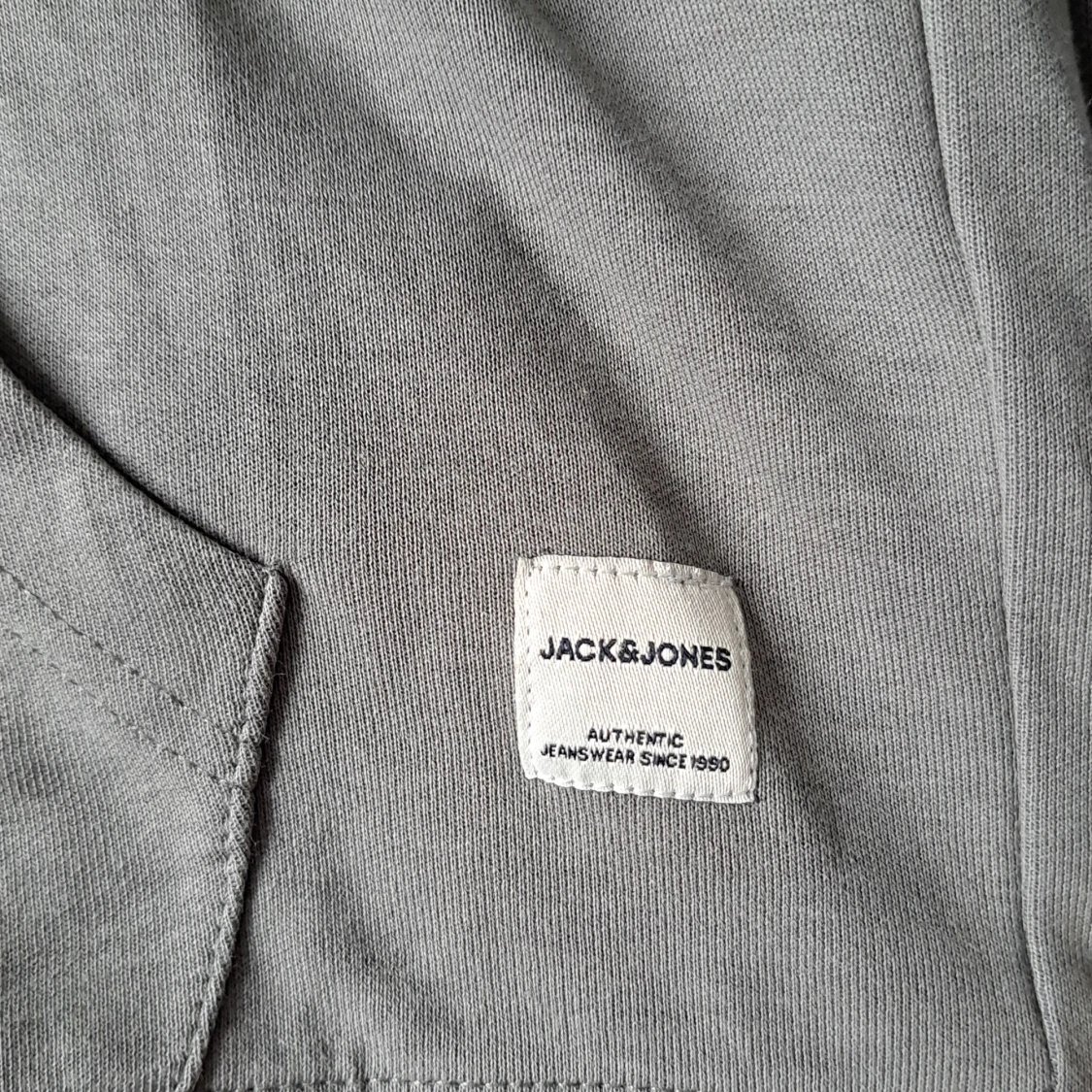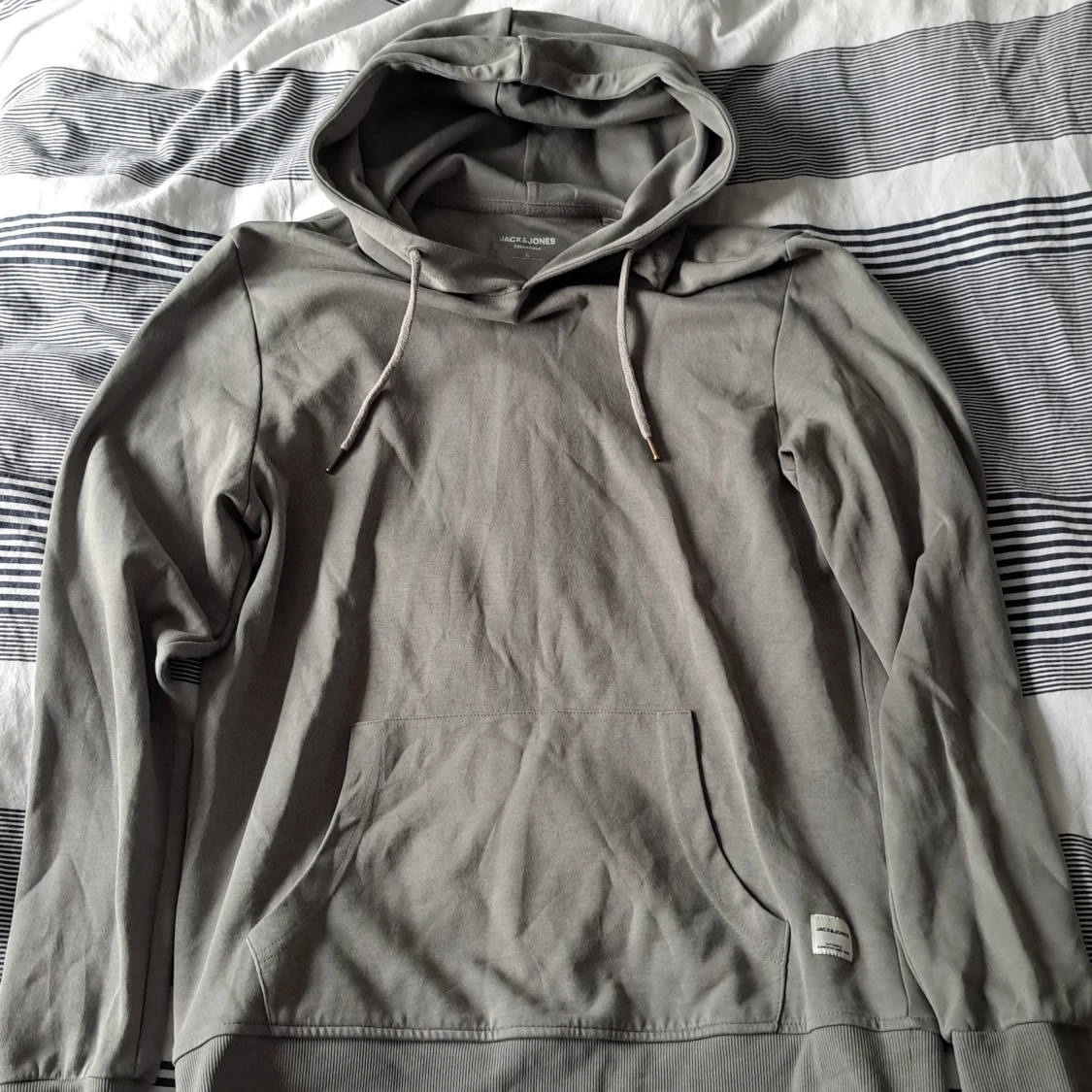 Snygg grå hoodie från Jack & Jones Essentials med klassisk känguruficka och dragsko i huvan. Tröjan är i mjuk bomull och har ribbade muddar vid ärmslut och nederkant. Perfekt för chill dagar eller när du vill ha en enkel och stilren look.