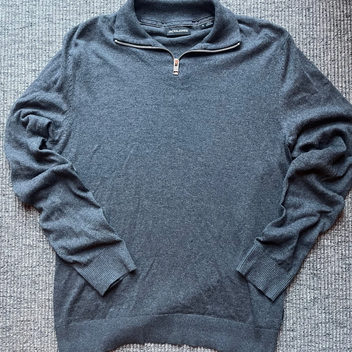 Mörkgrå långärmad tröja från Jack & Jones med half zip-dragkedja vid kragen. Tröjan är i mjukt material och har ribbade muddar vid ärmslut och nederkant. Perfekt för lager-på-lager och chill vardagsstil. Skickar inom 1-2 dagar och svarar snabbt om ni har frågor😄