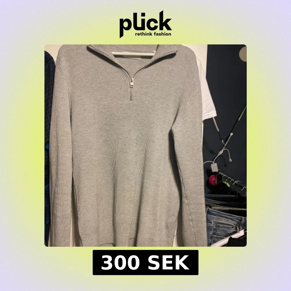 Snygg grå ribbad tröja med dragkedja vid halsen. Perfekt för kyligare dagar med sin långärmade design. Enkel och stilren, passar till många olika outfits.