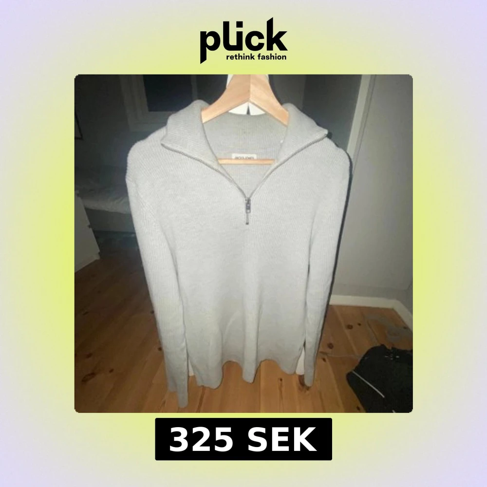 Säljer en ljusgrå stickad tröja från Jack & Jones i storlek M. Tröjan har en snygg half zip-dragkedja vid halsen och ribbad struktur. Perfekt för dig som gillar stilrena och bekväma plagg med lång ärm och avslappnad passform.