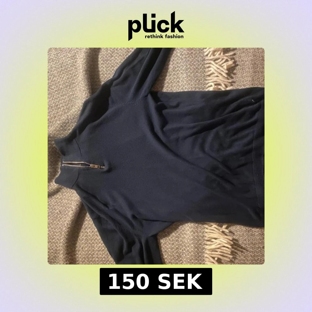 Mörkblå långärmad tröja med half zip från Jack & Jones. På etiketten står de L men den sitter som M.