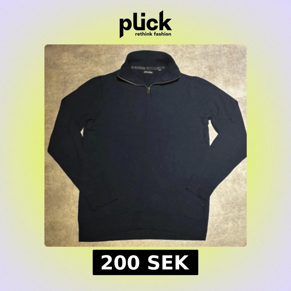 Snygg marinblå stickad tröja från Jack & Jones med half zip och hög krage. Tröjan har långa ärmar och ribbade muddar vid ärmslut och nederkant. Perfekt för dig som gillar stilren och enkel design.
