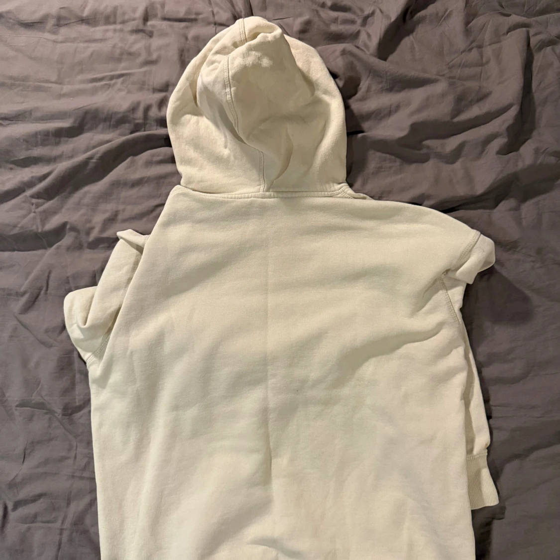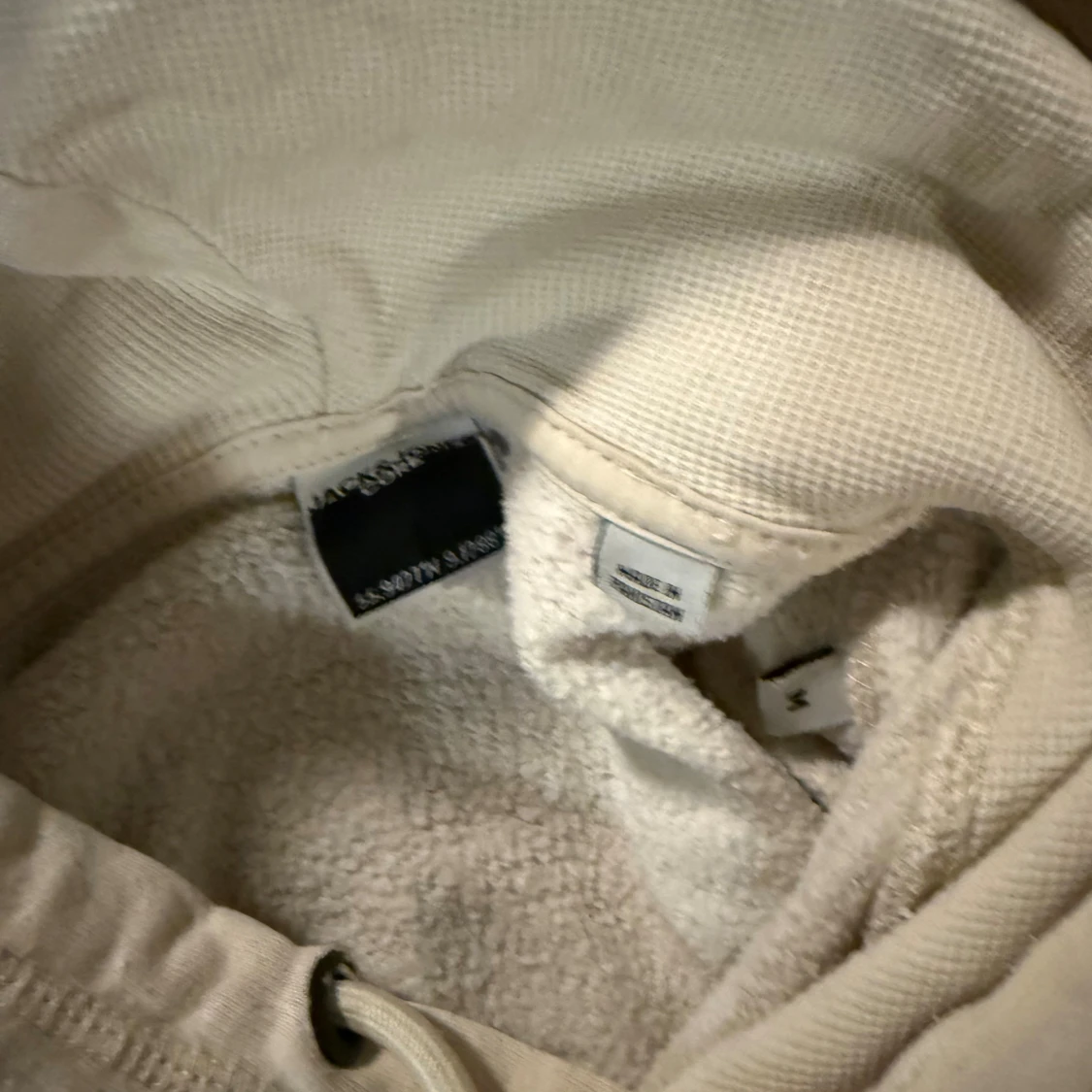 Säljer en beige hoodie från Jack & Jones i storlek M. Tröjan har huva med snörning, ribbade muddar och en stor magficka. Mjuk insida i fleece som gör den extra skön. Perfekt för chill dagar och enkel att matcha med jeans eller joggers. Använd ca 6 gånger.