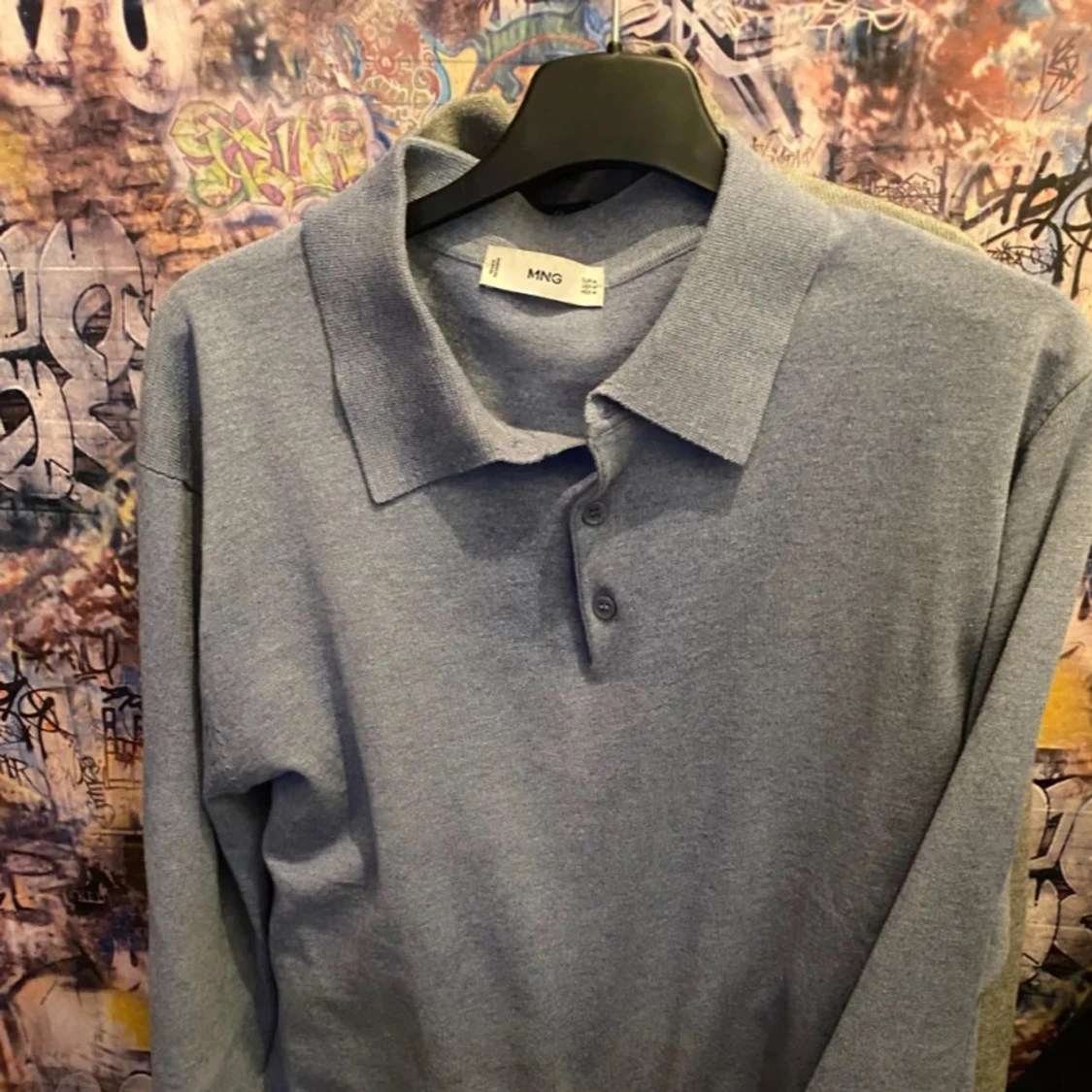 Säljer en ljusblå tröja från mango. Tröjan är i toppenskick, inte så tjock utan luftig och skön. Killen på bilden är 180 och väger cirka 68 kg. Hör av dig vid intresse eller funderingar.👊⚜️