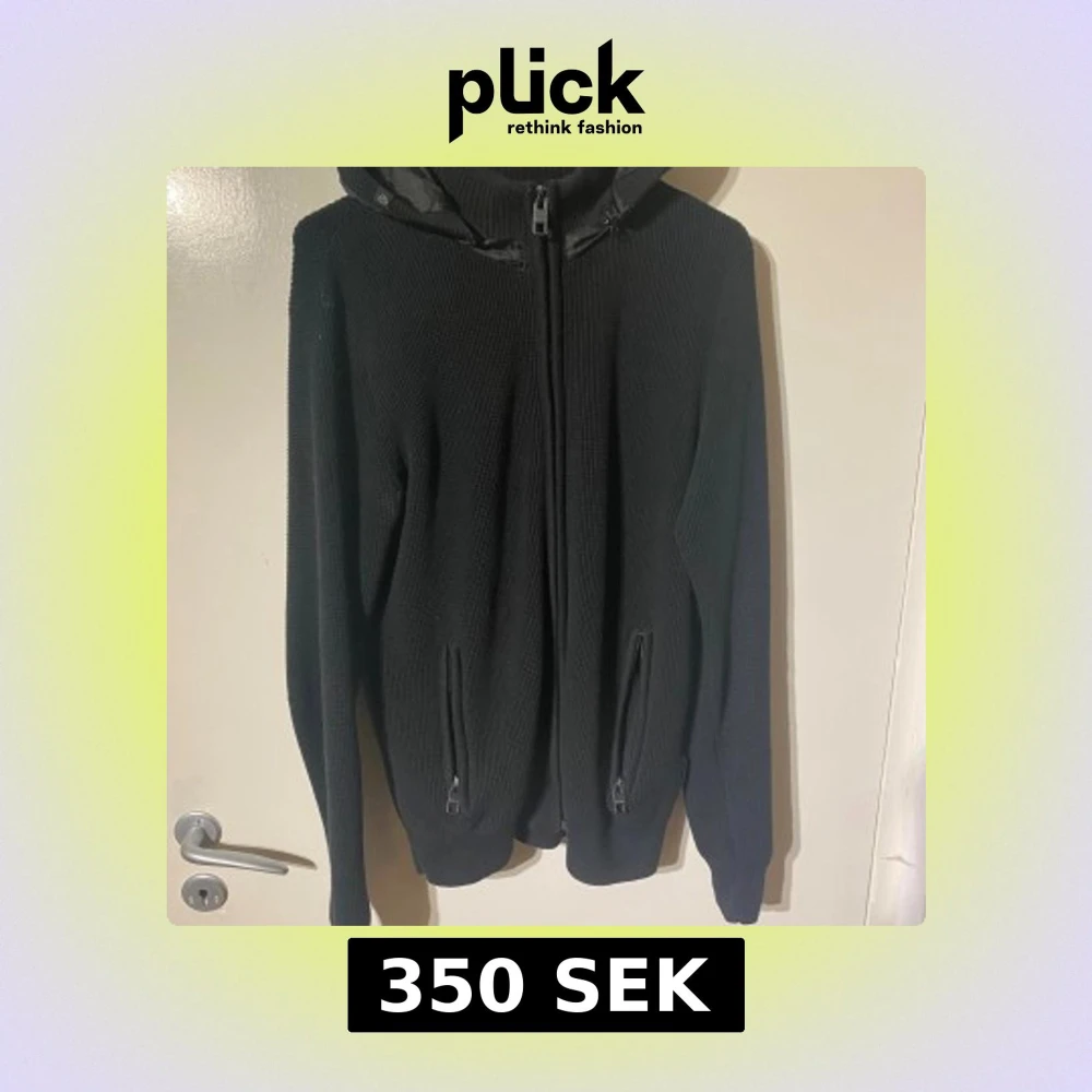 Svart stickad hoodie med dragkedja