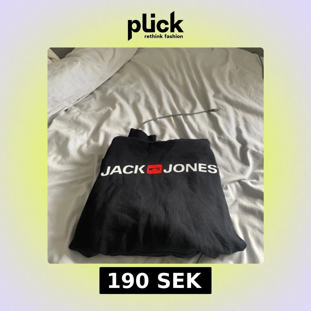 Svart hoodie från Jack & Jones med stor vit logga och röd detalj på bröstet. Klassisk modell med huva och snörning, perfekt för en chill och avslappnad stil. Mjuk bomullskänsla och lång ärm.