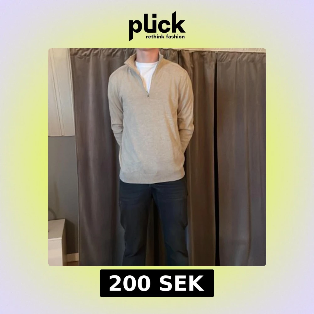 Snygg beige tröja med dragkedja och långärmad design. Aldrig använd