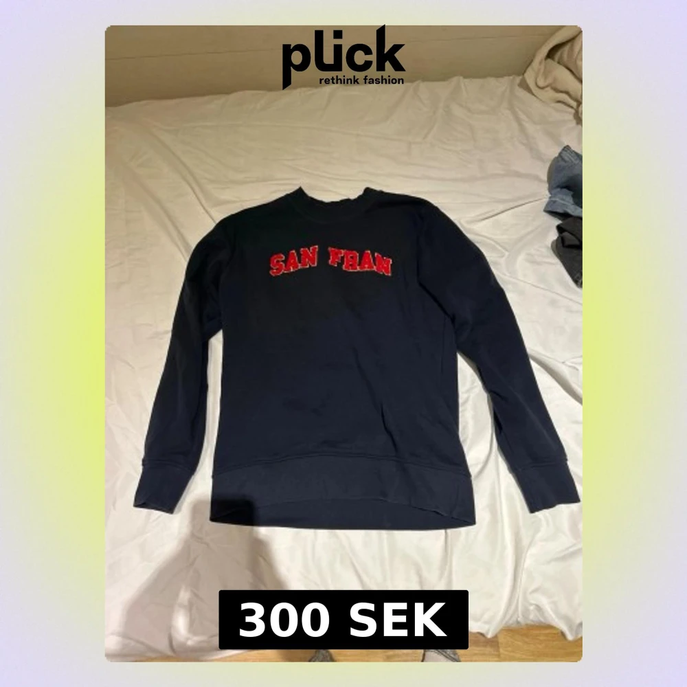 Mörkblå sweatshirt från Jack & Jones med röd text 'SAN FRAN' på bröstet. Klassisk rund halsringning och ribbade muddar vid ärmslut och nederkant. Perfekt för en avslappnad och cool stil.