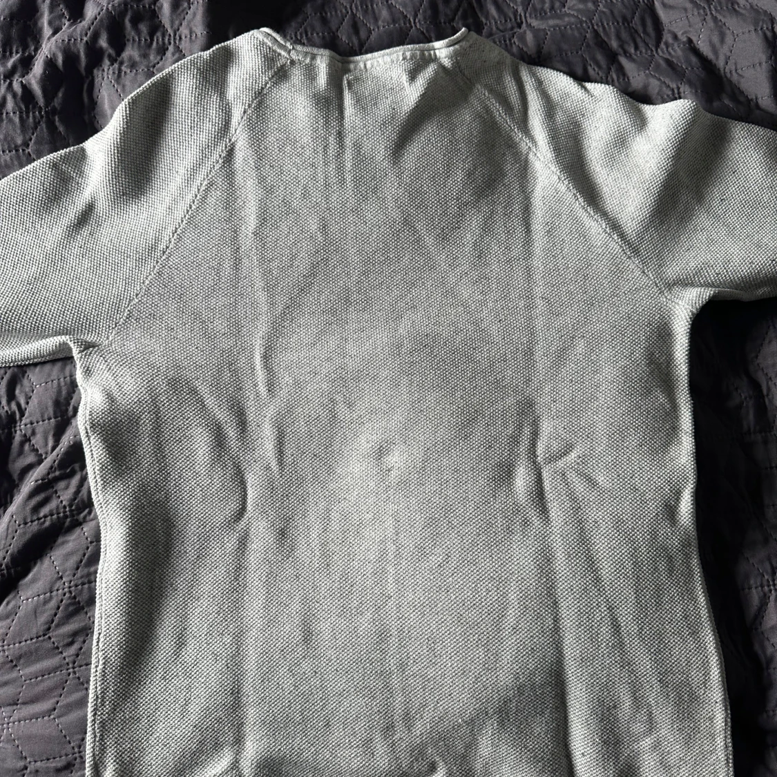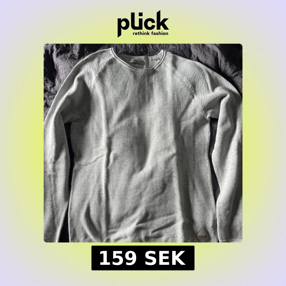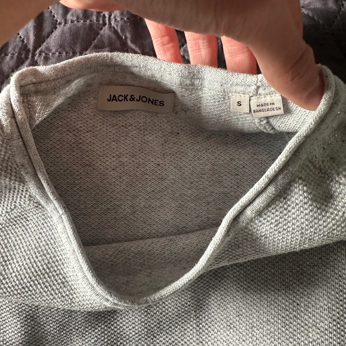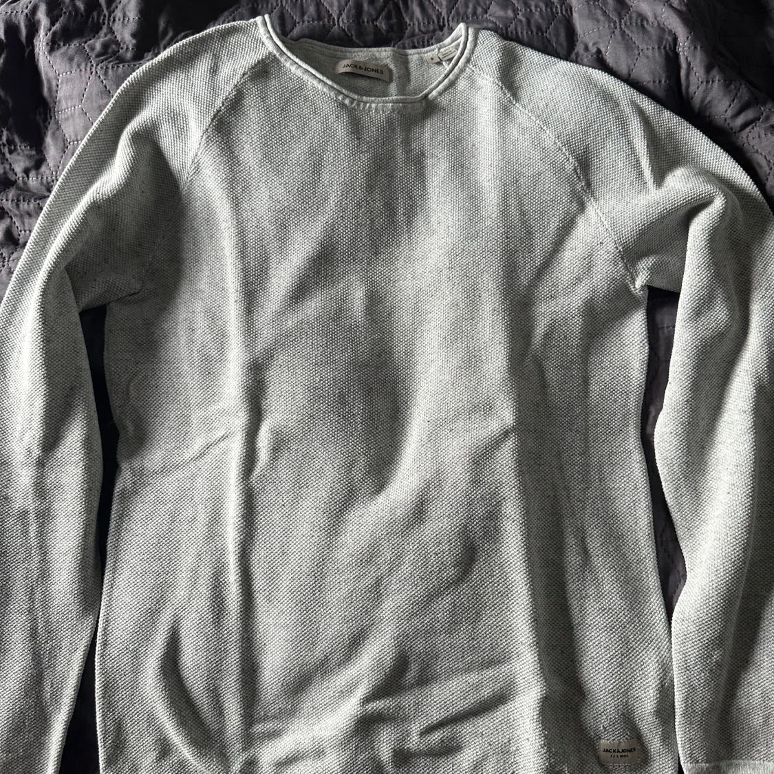 En stilren ljusgrå stickad tröja från Jack & Jones i storlek S. Tröjan har rund halsringning och långa ärmar, perfekt för lager-på-lager. Materialet är mjukt och ger en clean look som funkar till jeans eller chinos. nypris 500kr