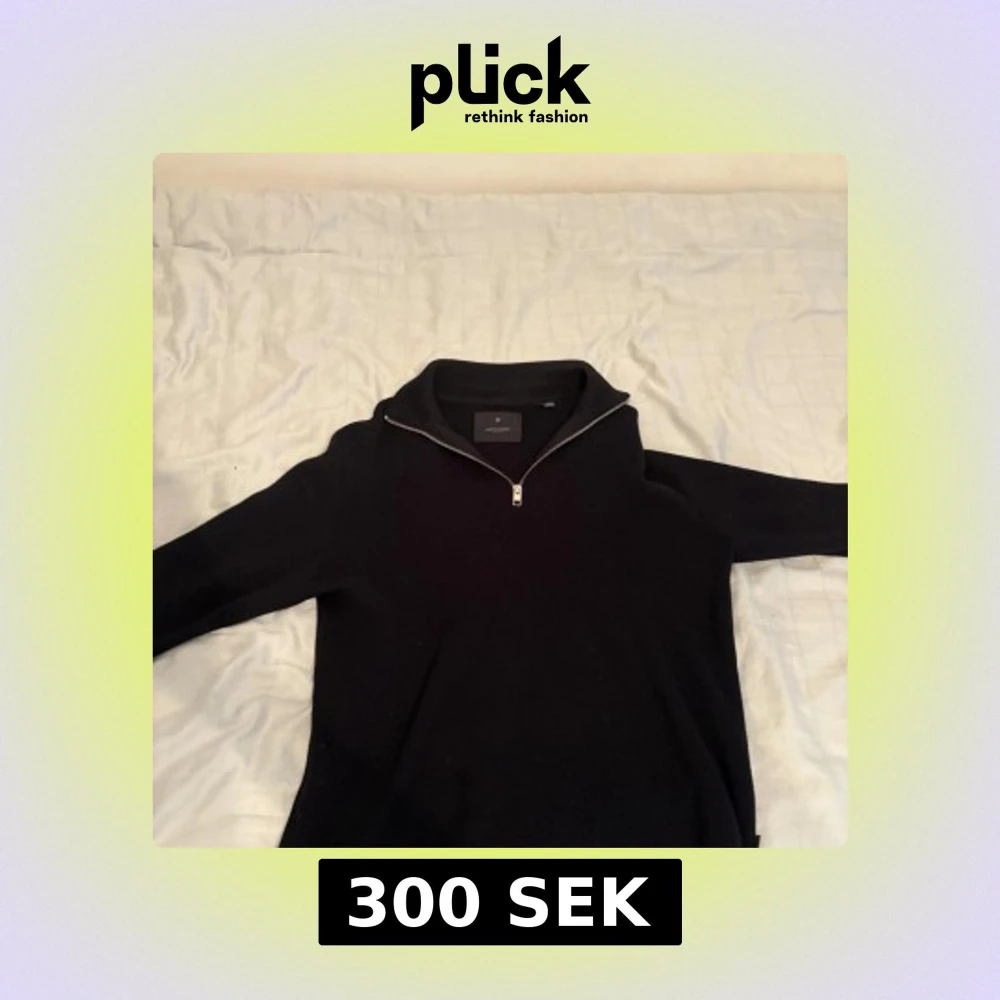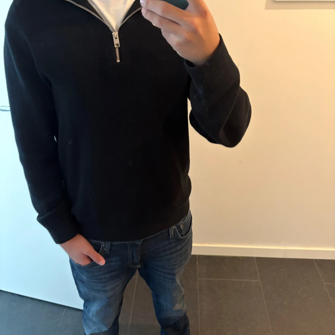 Svart långärmad tröja från Jack & Jones med snygg half zip-dragkedja vid halsen. Tröjan har en klassisk passform och är tillverkad i mjukt material som passar perfekt till jeans. Enkel och stilren design som funkar året runt.