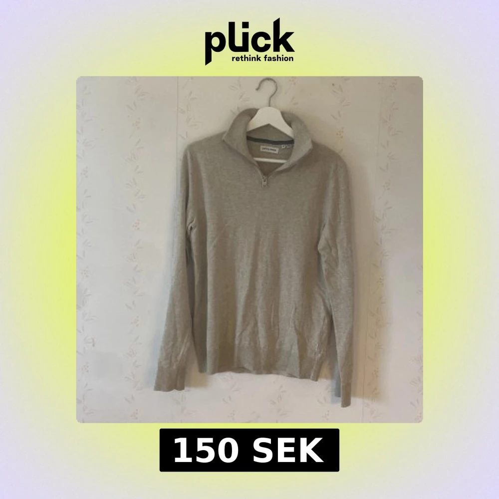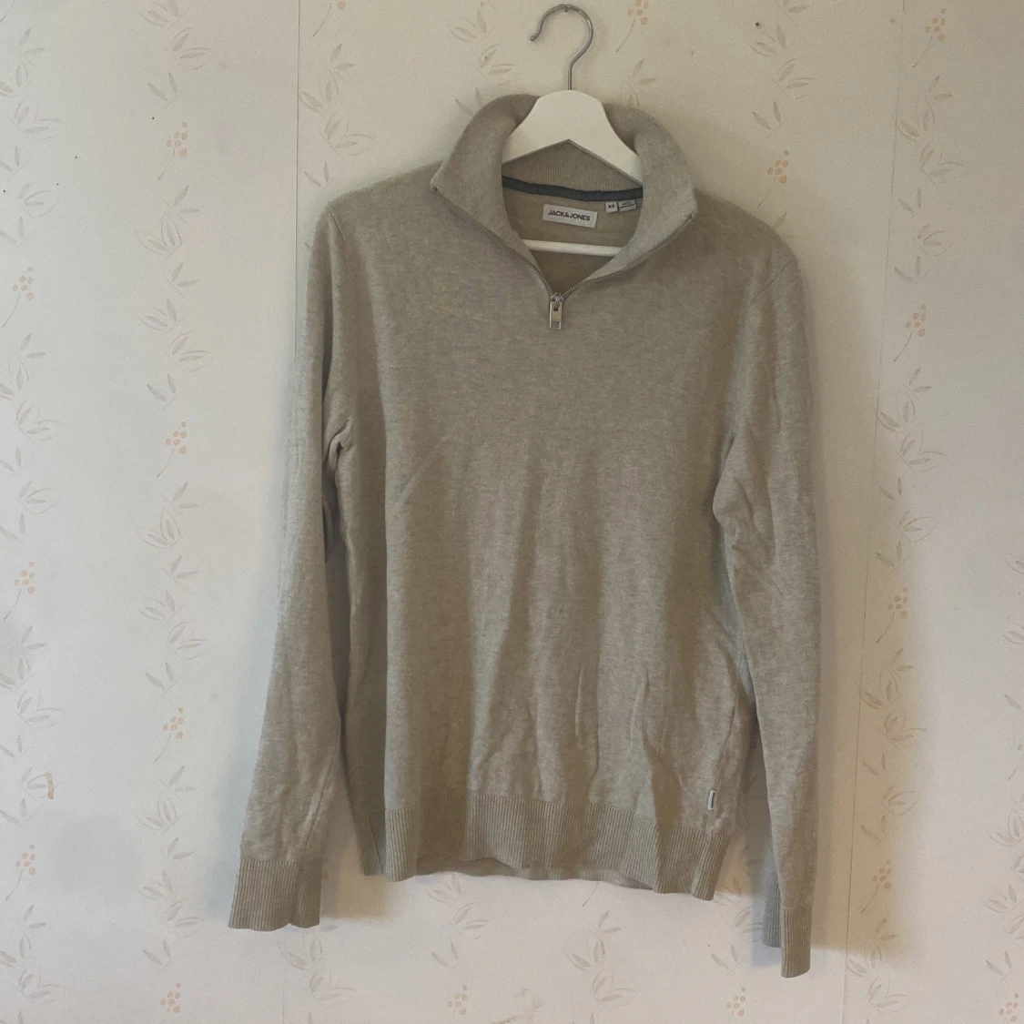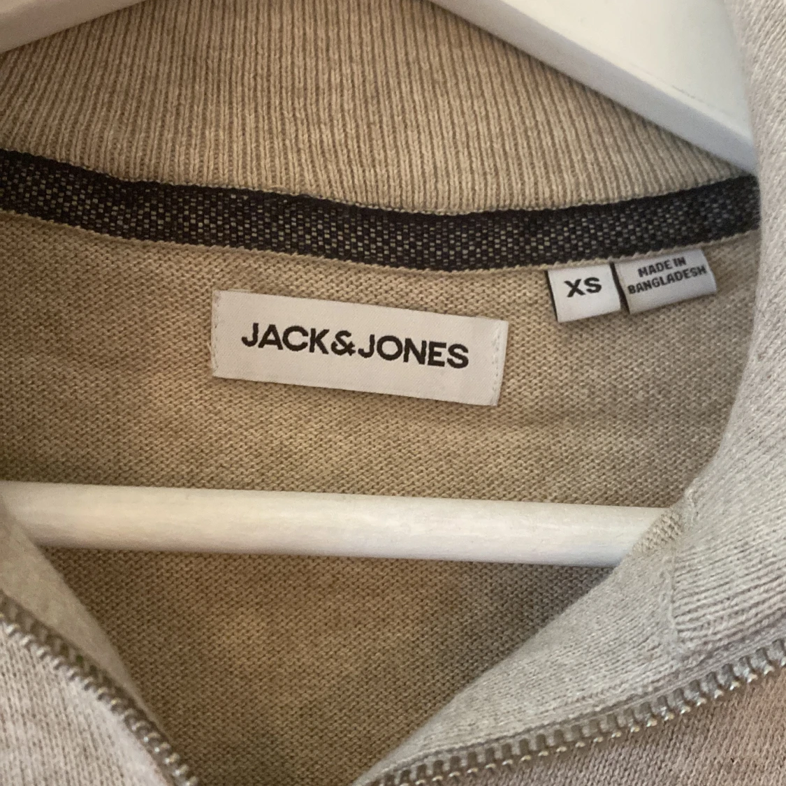 Beige långärmad tröja från Jack & Jones i storlek XS. Har en half zip-dragkedja och är tillverkad i mjuk bomull. Perfekt för lager-på-lager och chill stil. Enkel och clean design som funkar till det mesta.
