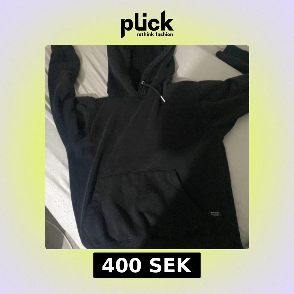 Säljer en stilren svart hoodie från Essentials. Den har en klassisk design med en stor ficka framtill och en bekväm huva. Perfekt för en avslappnad look.