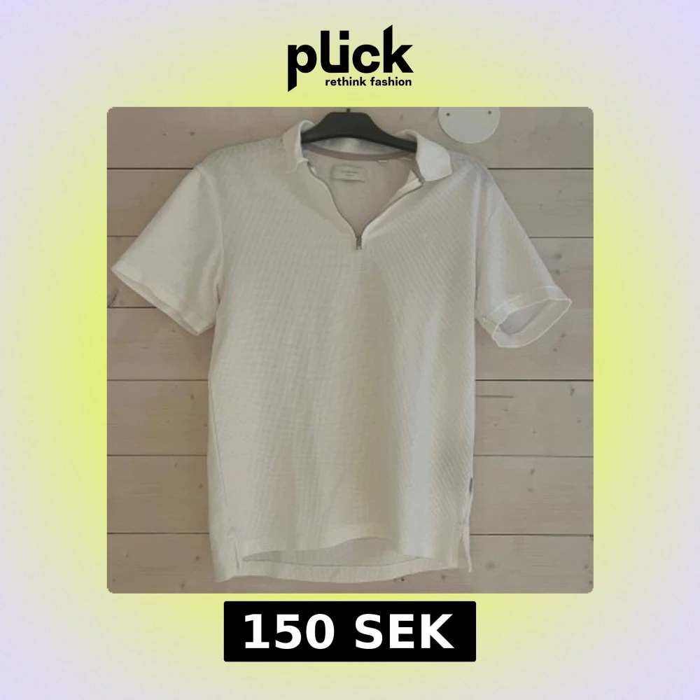 Vit pikétröja från Jack & Jones i storlek XS. Tröjan har en klassisk krage, korta ärmar och en half zip-dragkedja framtill. Materialet är strukturerat och känns luftigt, perfekt för vår och sommar. Enkel och stilren design som funkar till det mesta.