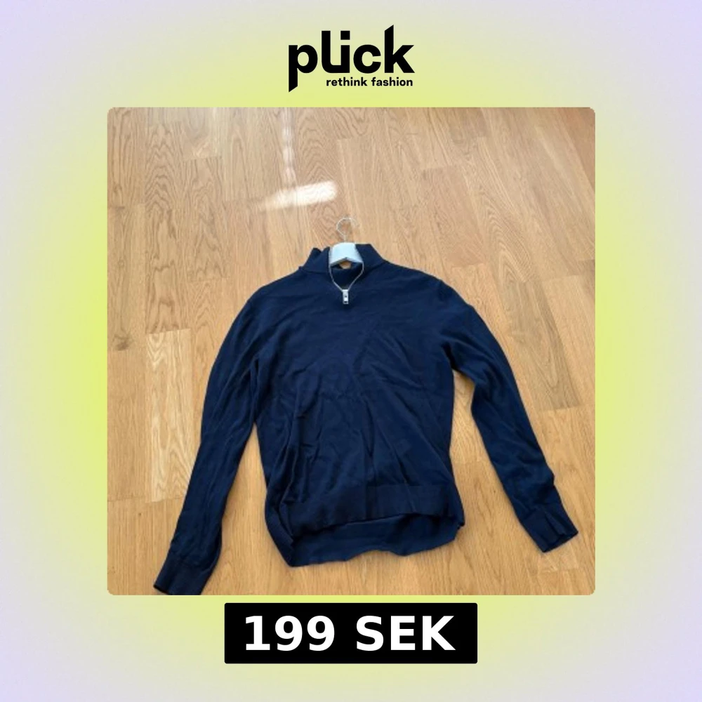 Mörkblå långärmad tröja från Jack & Jones i storlek XS. Tröjan har en stilren half zip-dragkedja vid halsen och ribbade muddar vid ärmslut och nederkant. Perfekt för lager-på-lager och snygg till jeans eller chinos. Köpt för 500kr mitt pris 199kr.