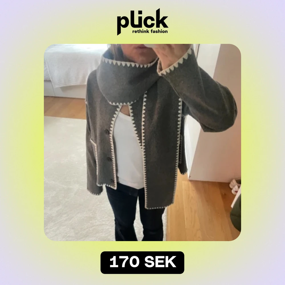 Stickad tunnare jacka med halsduk till, köpt från Nelly för några månader sedan för 500kr, använder inte så säljer, nyskick inga defekter. Tryck på köp nu. Pris ink halsduk.