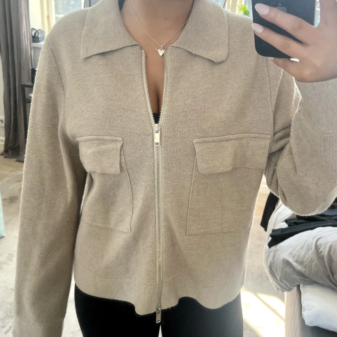 Superfin kofta som kan användas som jacka. Strl S/M. Den är lite nopprig men det går att få bort med en ullkamm , sedan är dragkedjan lite rostig, därav lågt pris.