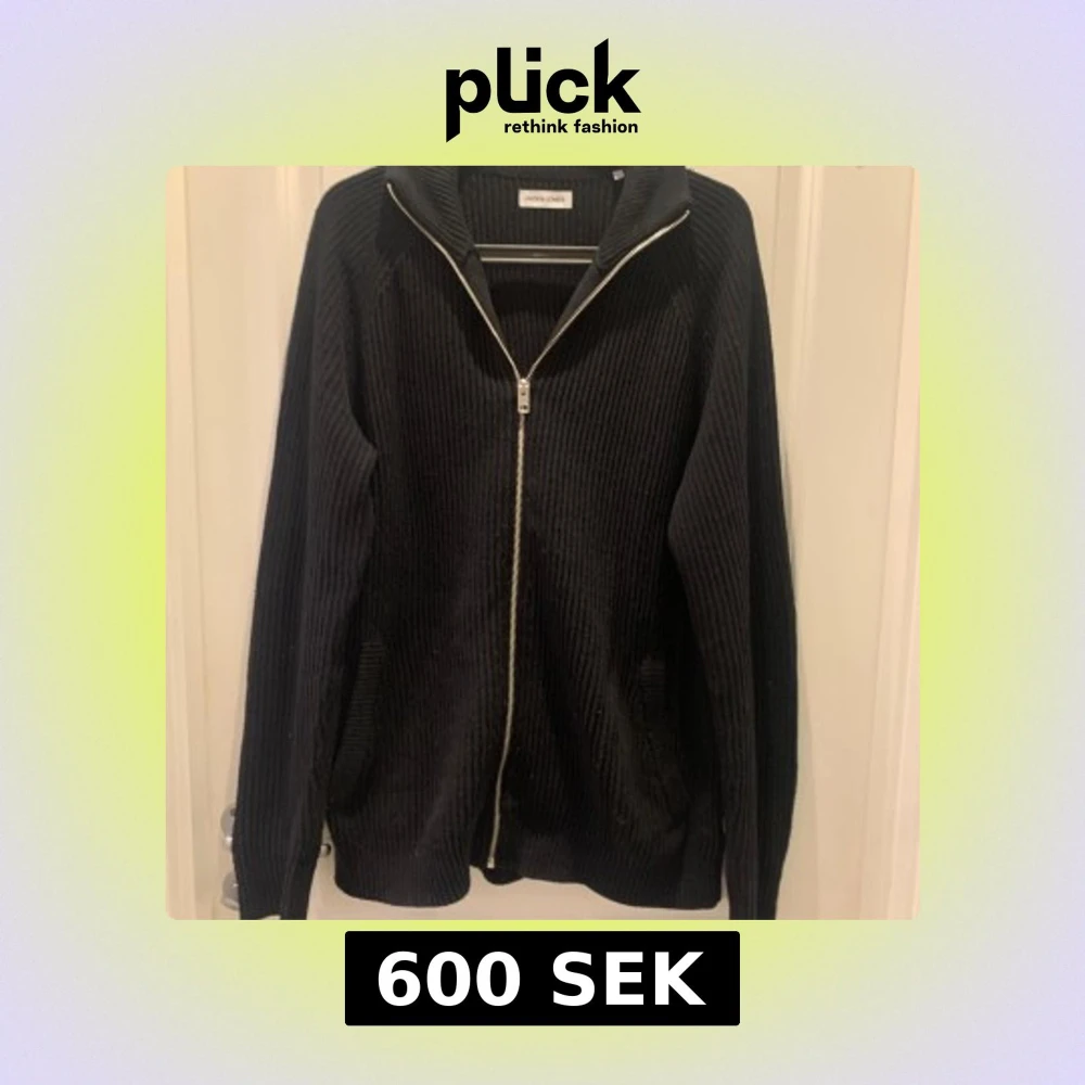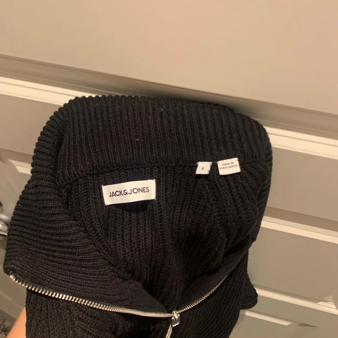Svart stickad kofta från Jack & Jones med hel dragkedja framtill och hög krage. Tröjan har långa ärmar och är tillverkad i ett mjukt stickat material som passar perfekt till kyligare dagar. Enkel och stilren design som funkar till det mesta.