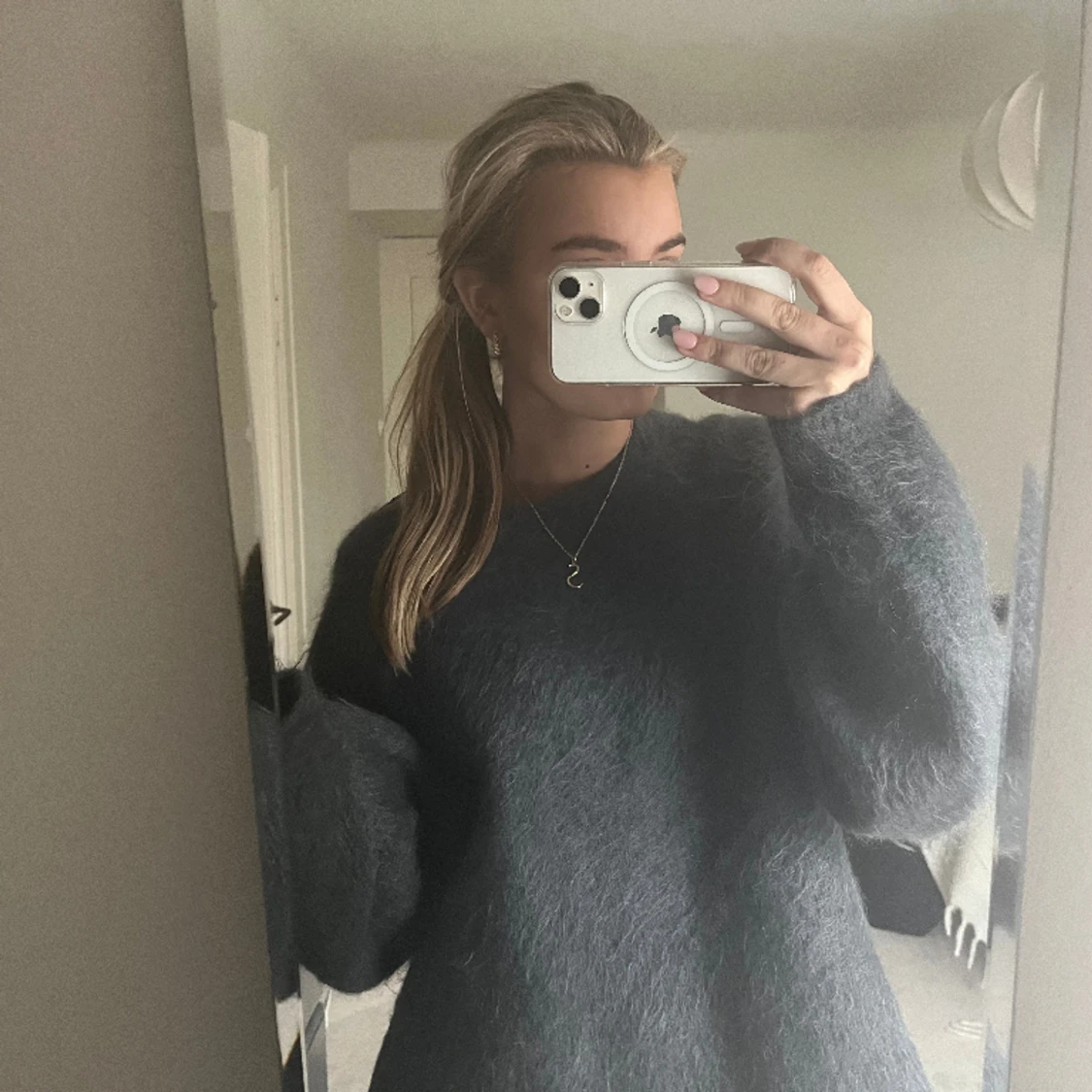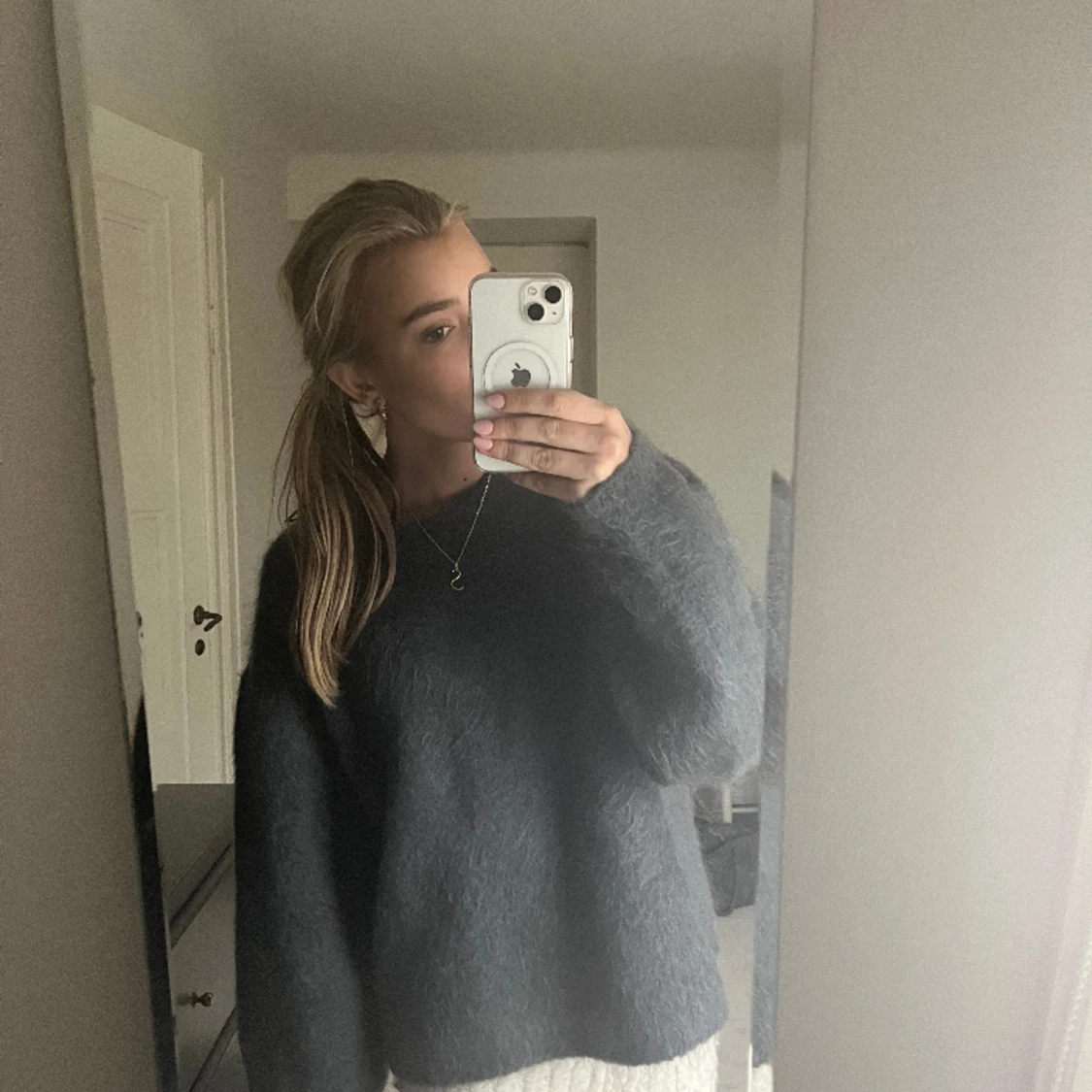 Jättefin stickad grå tröja från hm, mohair/wool Blend. Köpte för 2 månader sedan och använd fåtal gånger. Köpt för 1399 kr🩷storlek L men passar mig som är en S, inte så stor i storleken