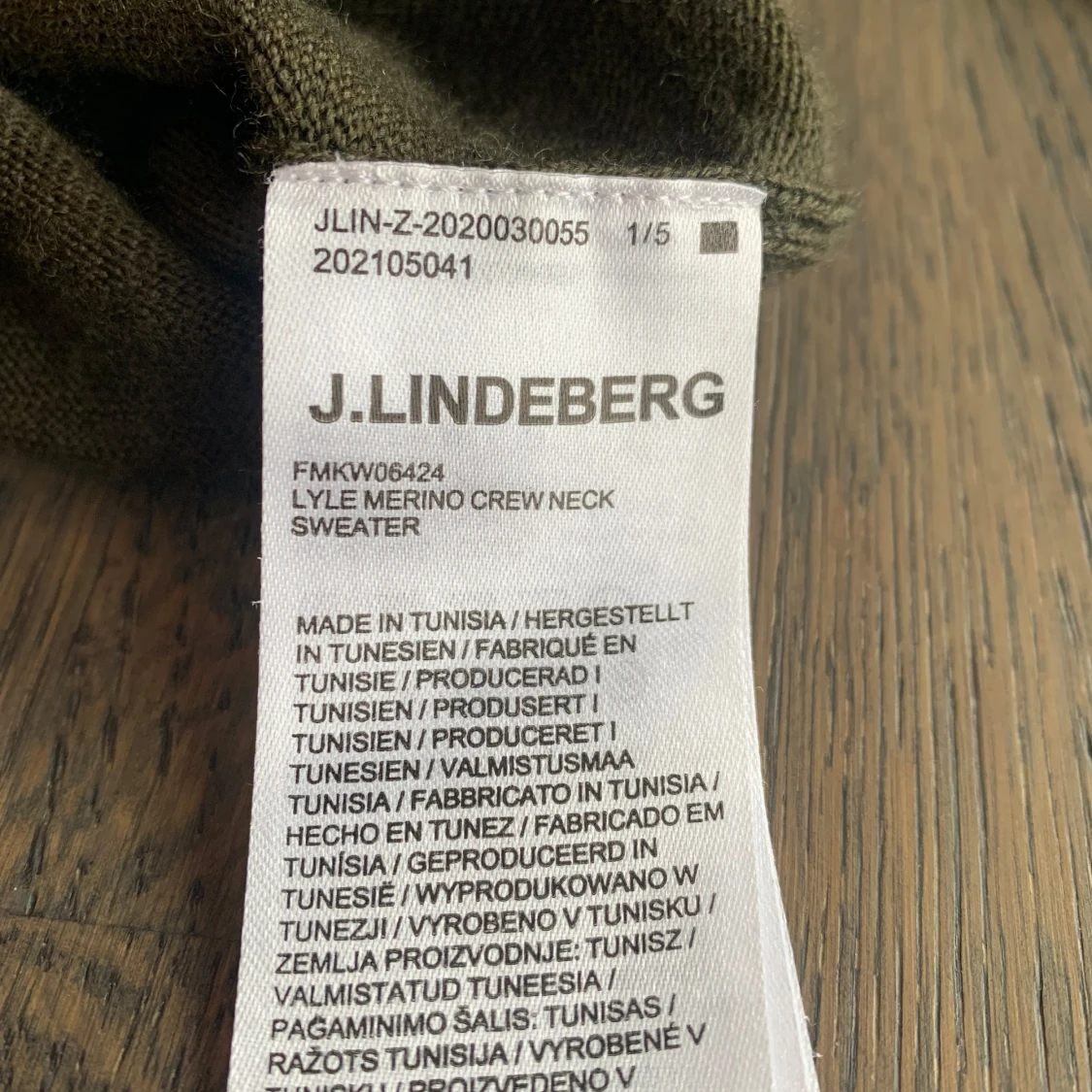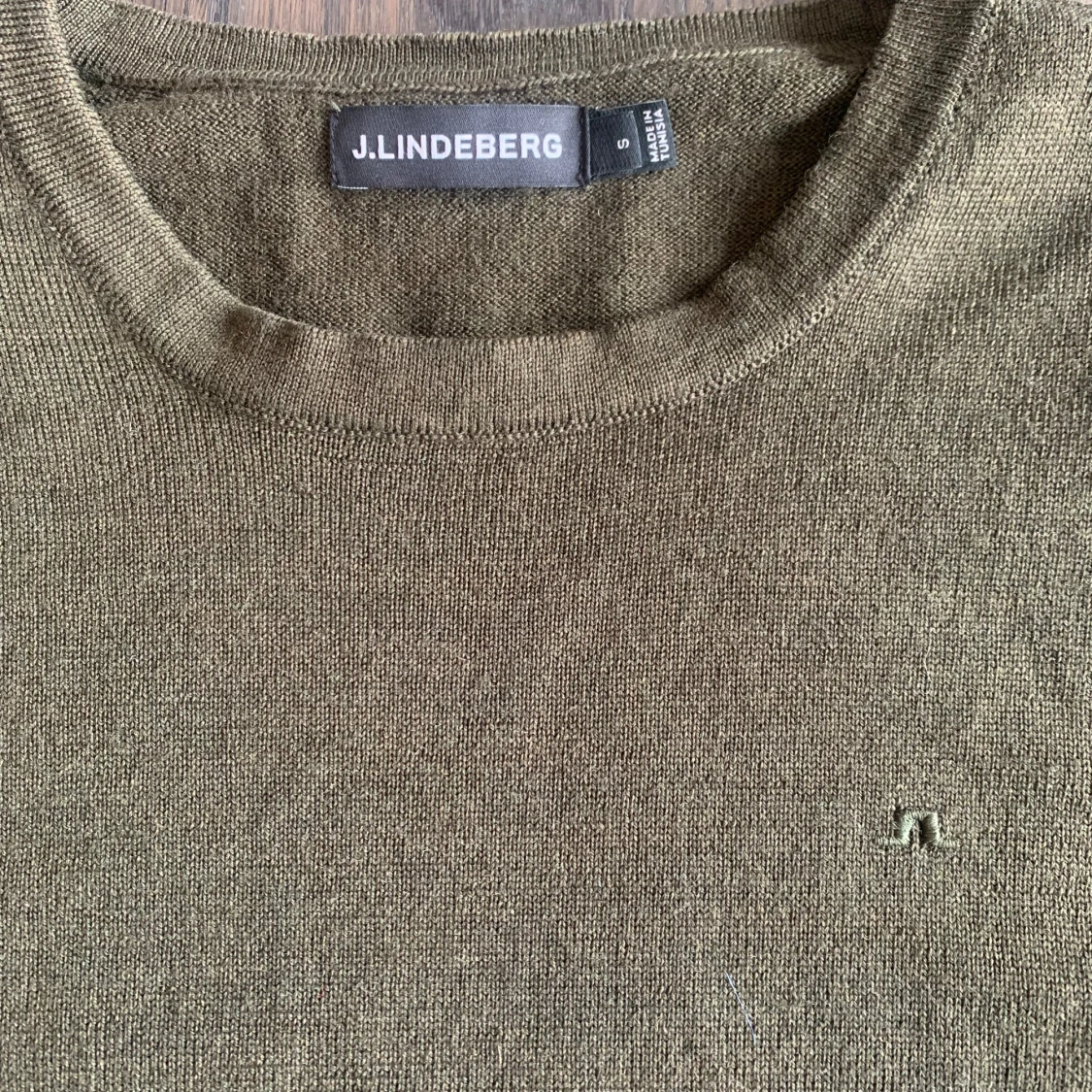Säljer en stilren olivgrön tröja från J.Lindeberg i mjuk merinoull. Tröjan har en rund halsringning och långa ärmar, perfekt för kyligare dagar. Diskret logga på bröstet ger en elegant touch. Passar både till vardags och mer uppklädda tillfällen.