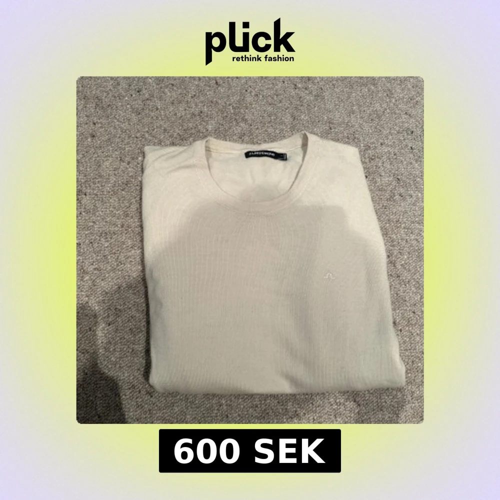 Snygg beige stickad tröja från J.Lindeberg med rund halsringning och diskret broderad logga på bröstet. Perfekt för en stilren och enkel look. Passar bra till både jeans och chinos. Använd 2 gånger tvättad en gång så den är som ny. Nypris 1600kr mitt pris 600kr
