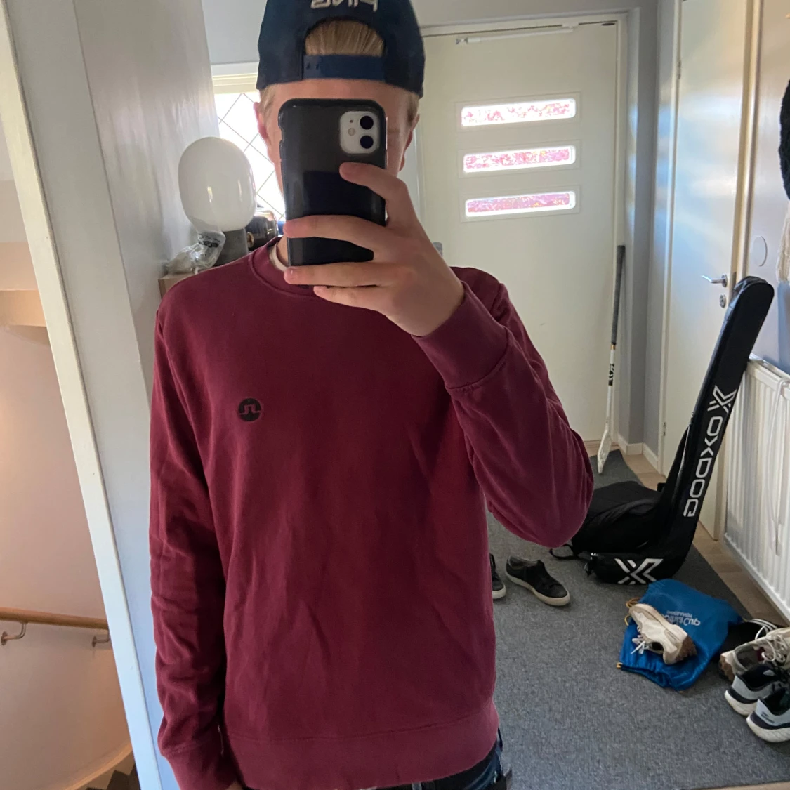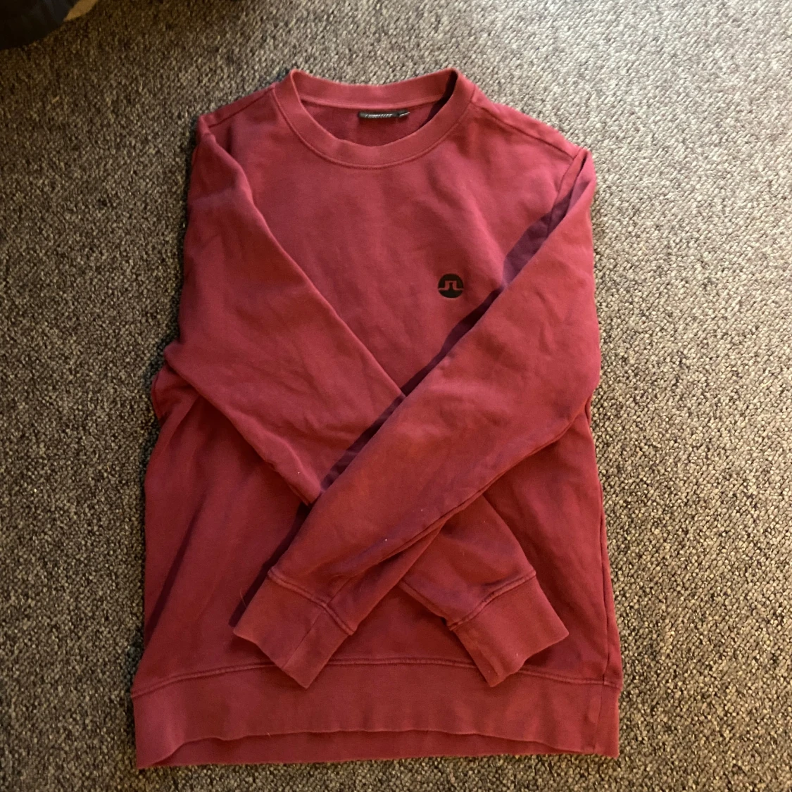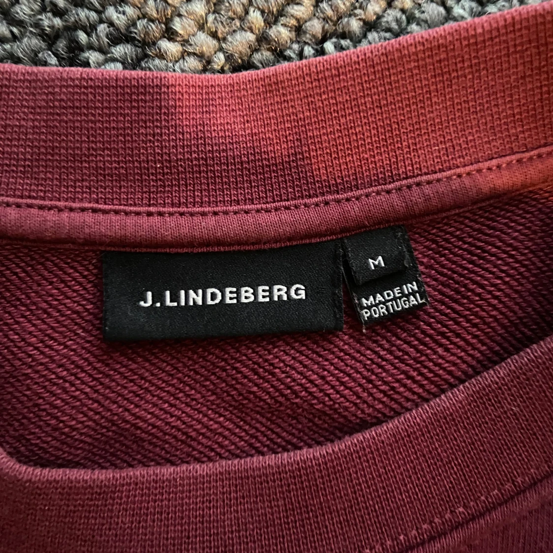 Vinröd sweatshirt från J.Lindeberg med rund hals och svart logga på bröstet. Tröjan har långa ärmar och ribbade muddar vid ärmslut och nederkant. Perfekt för dig som gillar stilren och enkel design. Bra skick, använd en del, stl m och passar dig runt 180. Bara att höra av sig vid frågor eller liknande!