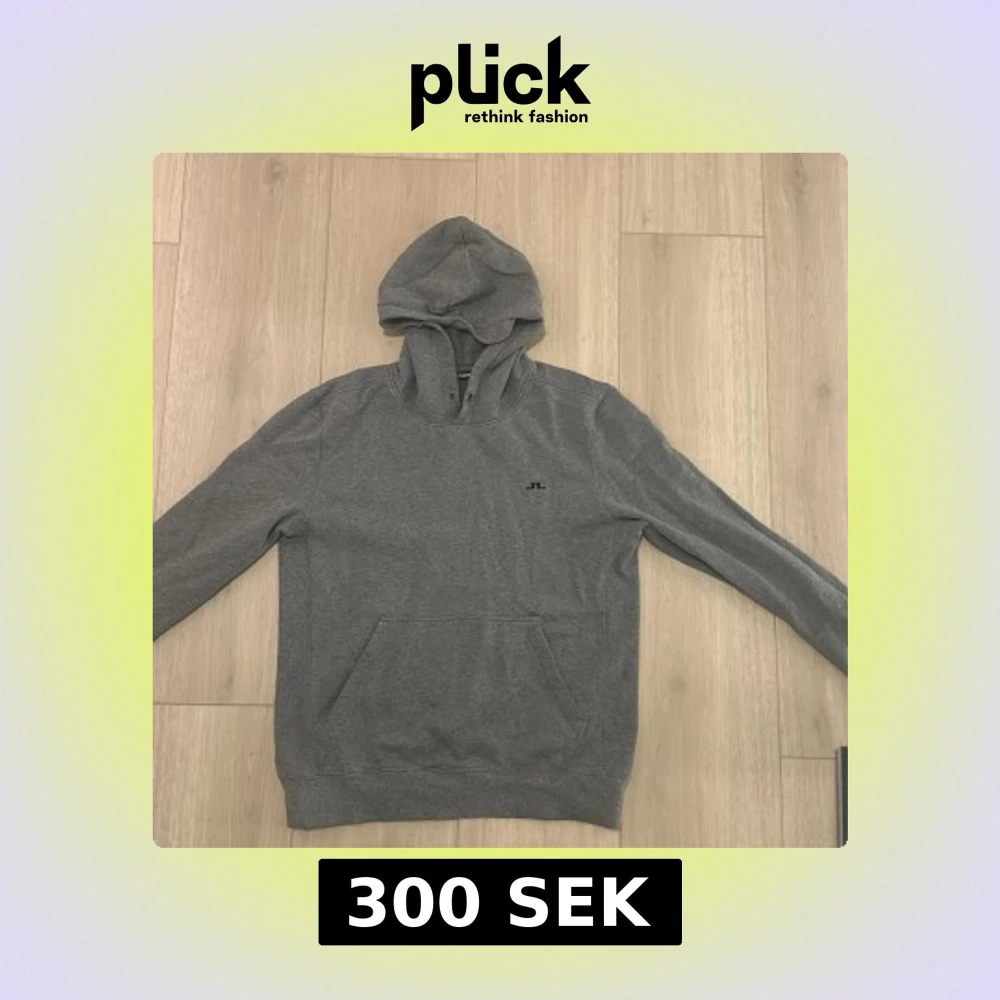 Säljer en stilren grå hoodie från J.Lindeberg med liten logga på bröstet. Tröjan har huva och en stor magficka framtill. Perfekt för en avslappnad look.