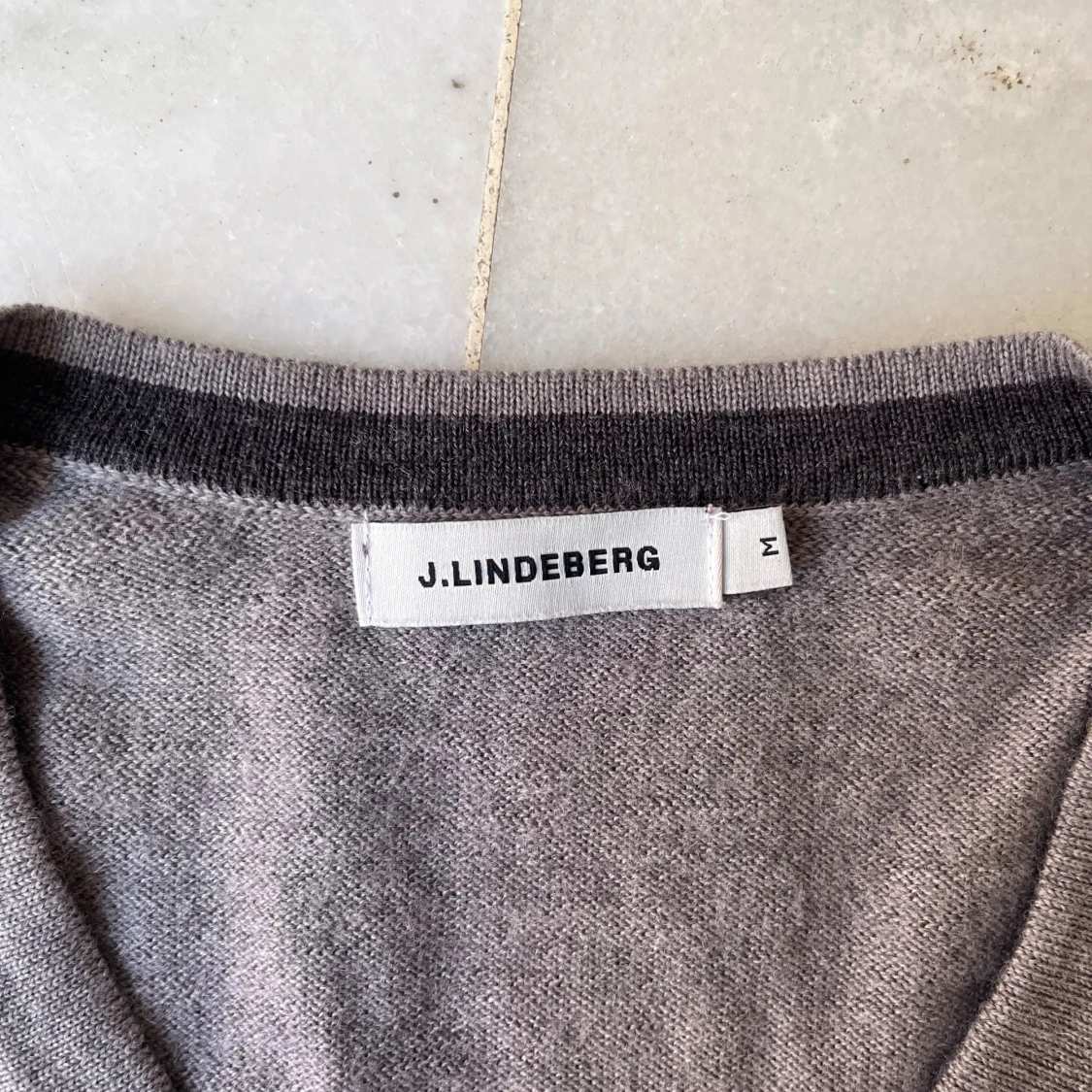 Snygg grå v-ringad tröja från J.Lindeberg i 100% merinoull. Diskret broderad logga på bröstet och ribbade muddar vid ärmslut och nederkant. Perfekt för dig som gillar stilrena och klassiska plagg med en modern touch.