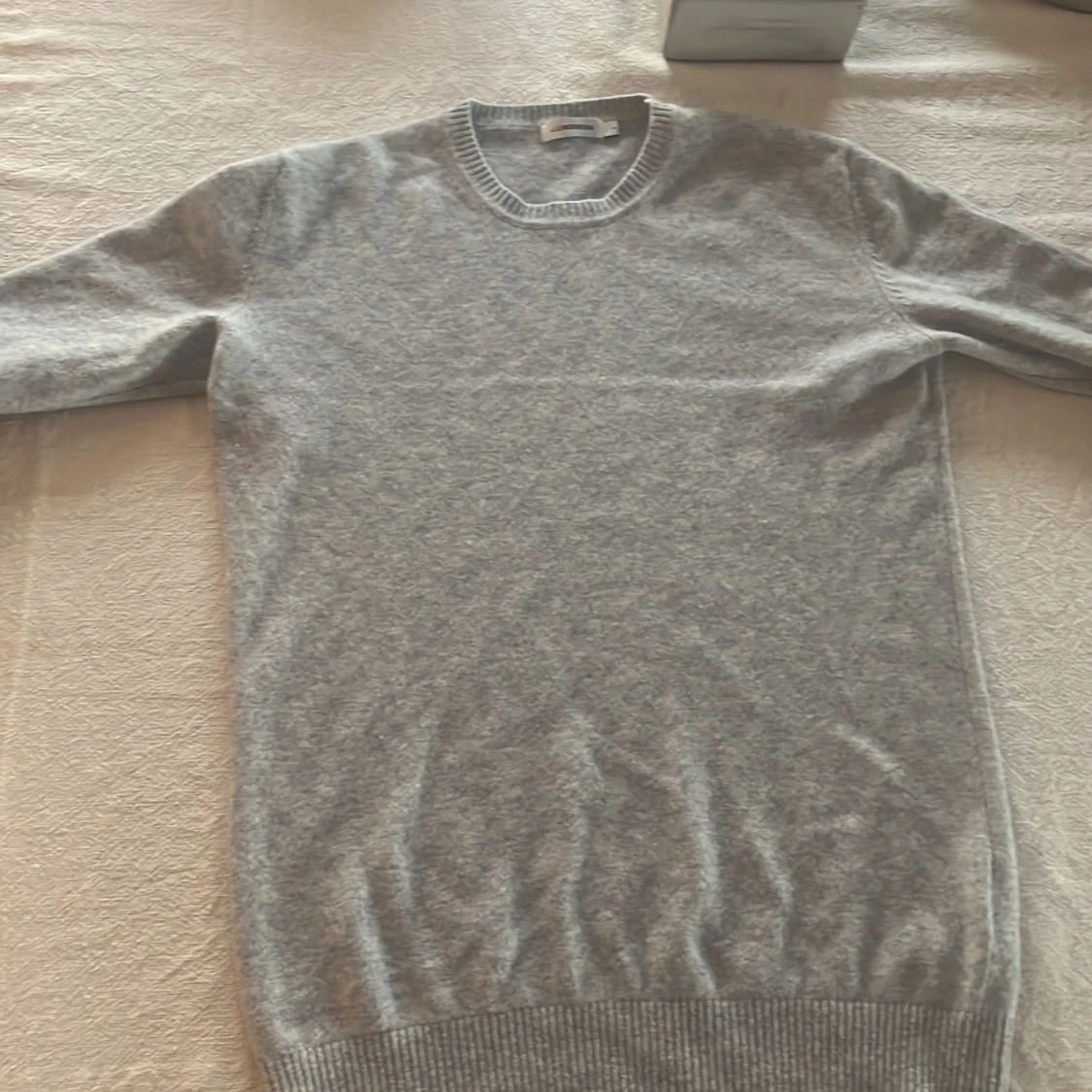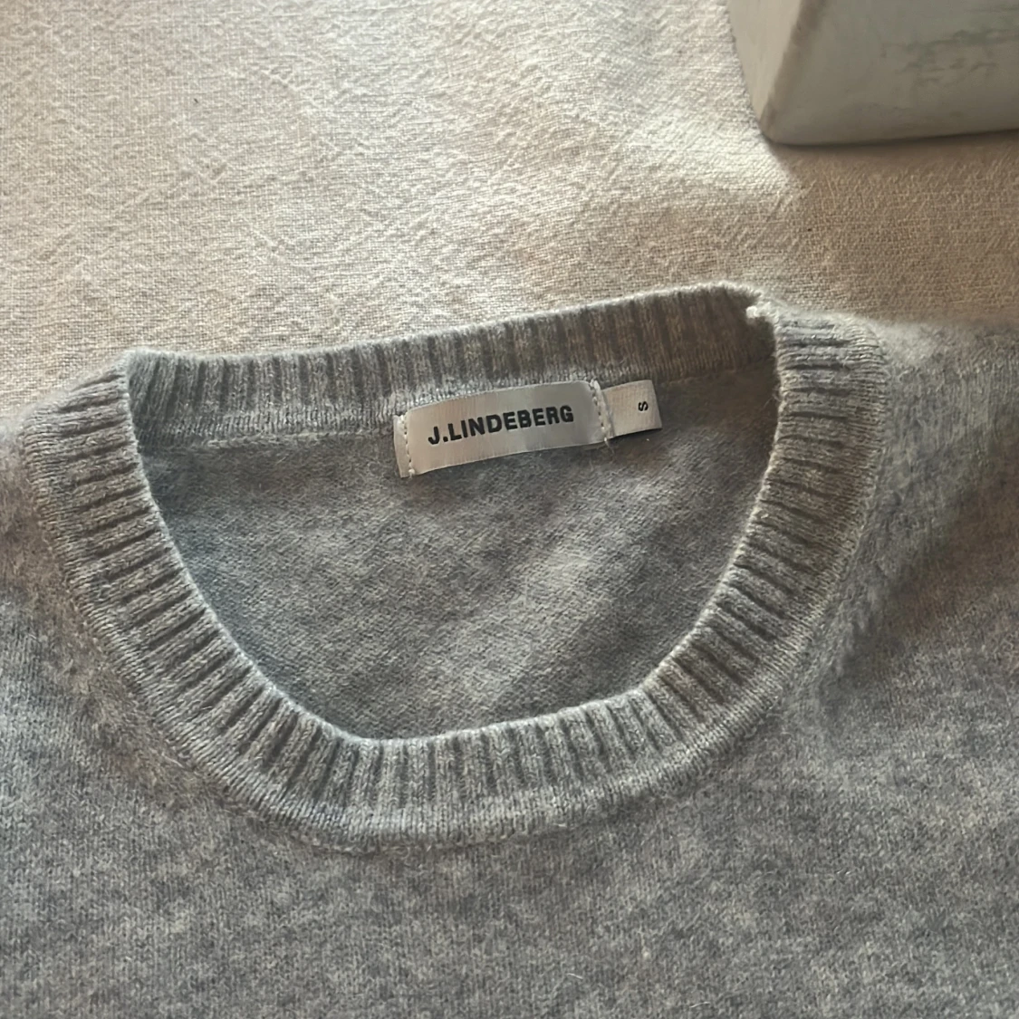 Mjuk och stilren grå tröja från J.Lindeberg i kashmir. Rund halsringning med ribbade muddar vid ärmslut och nederkant. Klassisk passform och långärmad, perfekt för dig som gillar enkel och clean look. Knappast använd