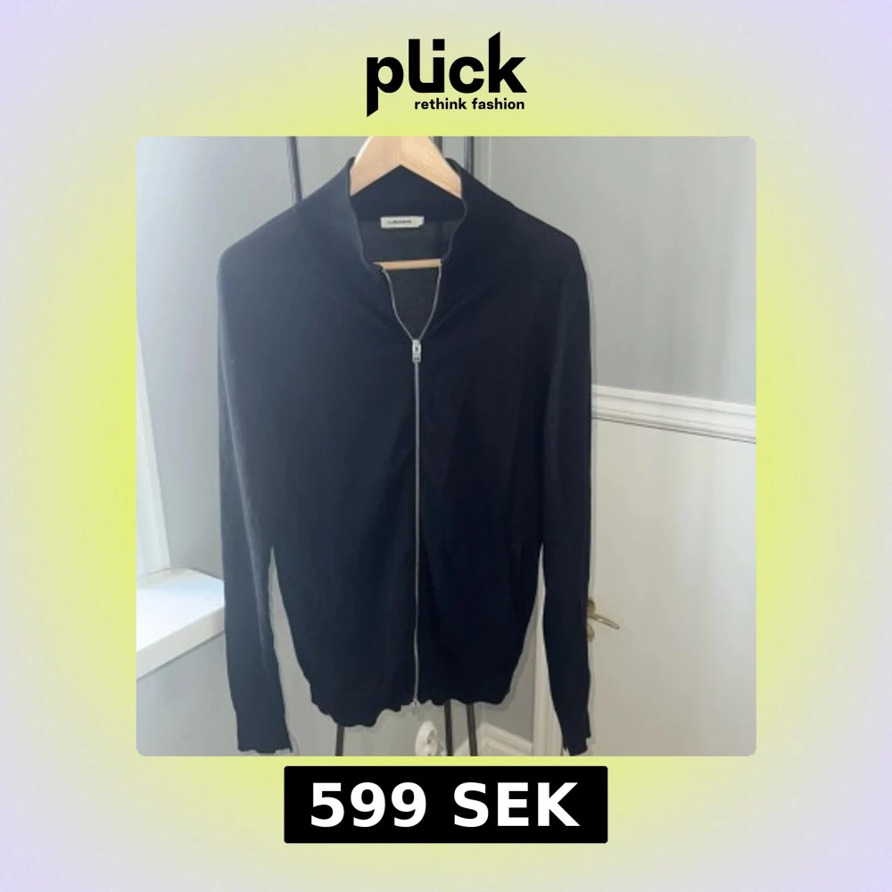 Svart kofta från J.Lindeberg i storlek S. Tröjan har en stilren design med ribbad krage och hel dragkedja framtill. Materialet är mjukt och stickat, perfekt för lager-på-lager. Långärmad och med fickor på sidorna för extra chill vibe.