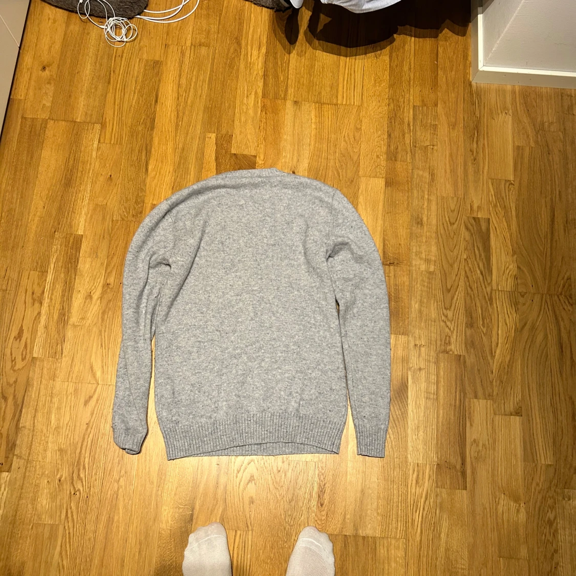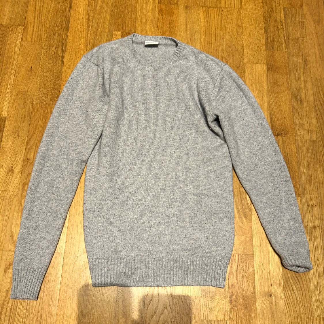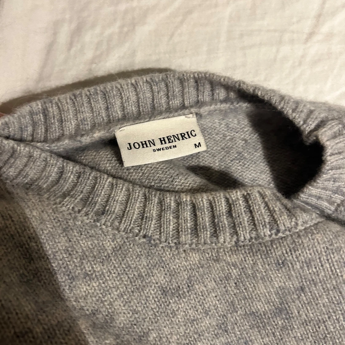 Säljer en stilren ljusgrå stickad tröja från John Henric. Tröjan är i storlek M men sitter lite mer som en M/S