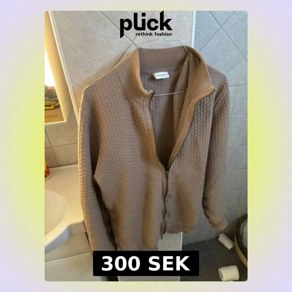 Stilren beige ziptröja från John Henric med diskret rutstruktur i materialet. Tröjan har ribbade muddar och krage samt dragkedja framtill. Perfekt för lager-på-lager och enkel att matcha med andra plagg.