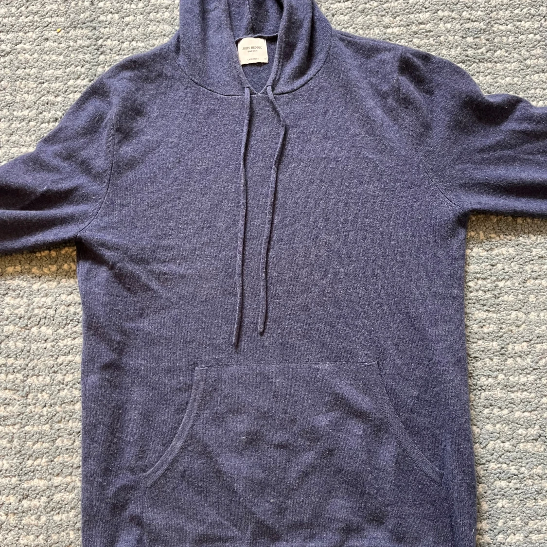 Mysig marinblå hoodie i 100% kashmir från John Henric. Tröjan har huva med snörning, magficka och långa ärmar. Perfekt för dig som vill ha en lyxig och stilren look med extra komfort. Nypris 2500kr