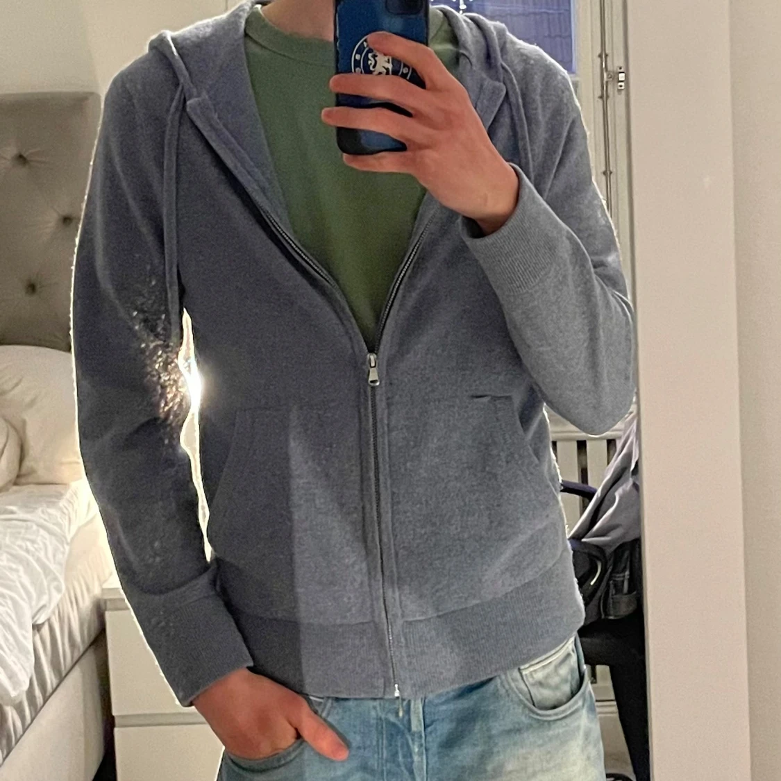 Säljer en stilren ljusblå Kashmir zip-up hoodie från John Lewis.