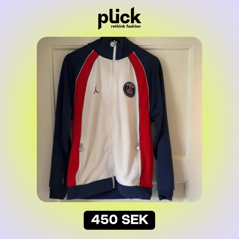 Säljer denna snygga Jordan x Psg zip tröja i storlek S. Mycket bra skick och inga tecken på användning.