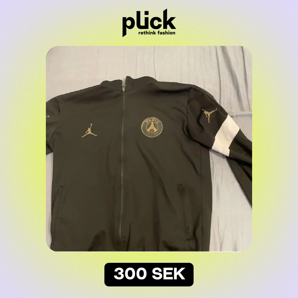 Säljer en snygg svart träningsjacka från Jordan i samarbete med PSG. Jackan har en dragkedja framtill och är långärmad med vita detaljer på ärmarna. Perfekt för fotbollsträning eller som en stilren vardagsjacka. Den är i mycket bra skick och redo för nya äventyr!