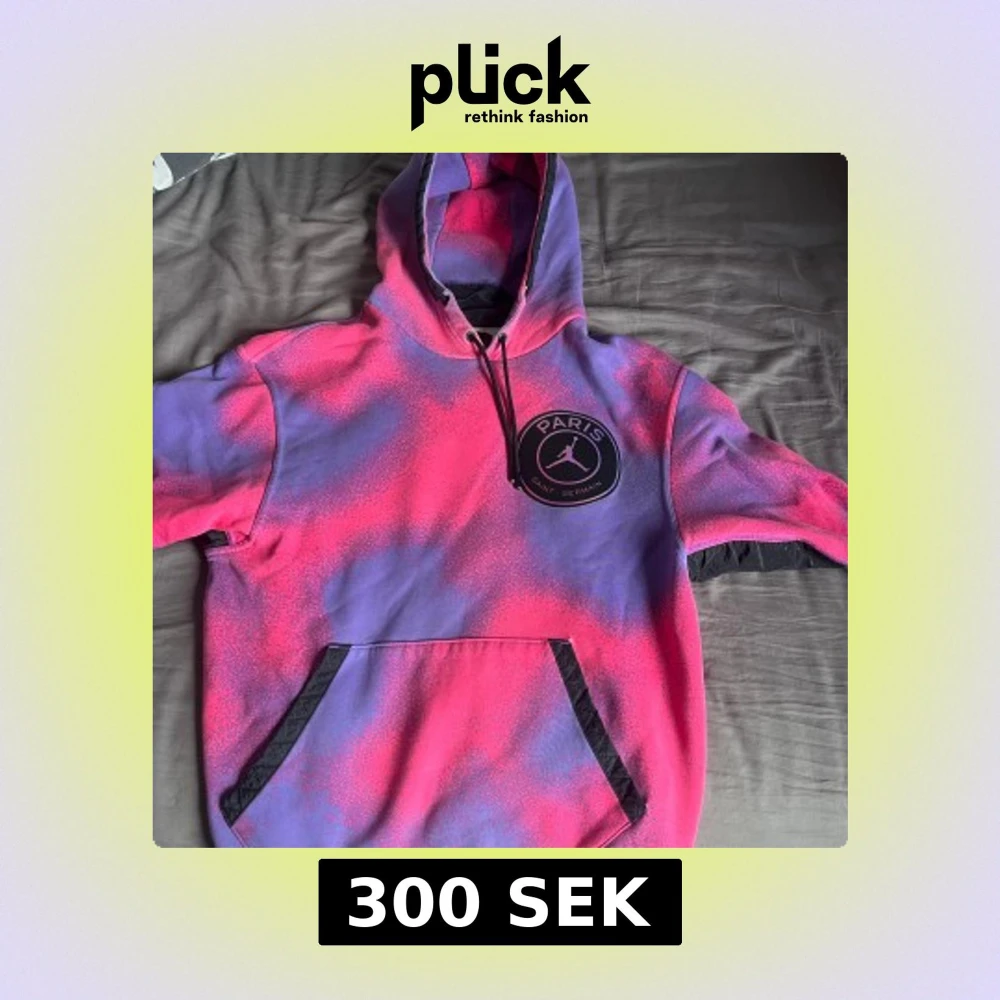 Säljer en hoodie som gjordes år 2022 för att efterlikna PSG’s fjärde ställ. Den har använts en del så är lite sliten men har inga stora skador som hål eller liknande.