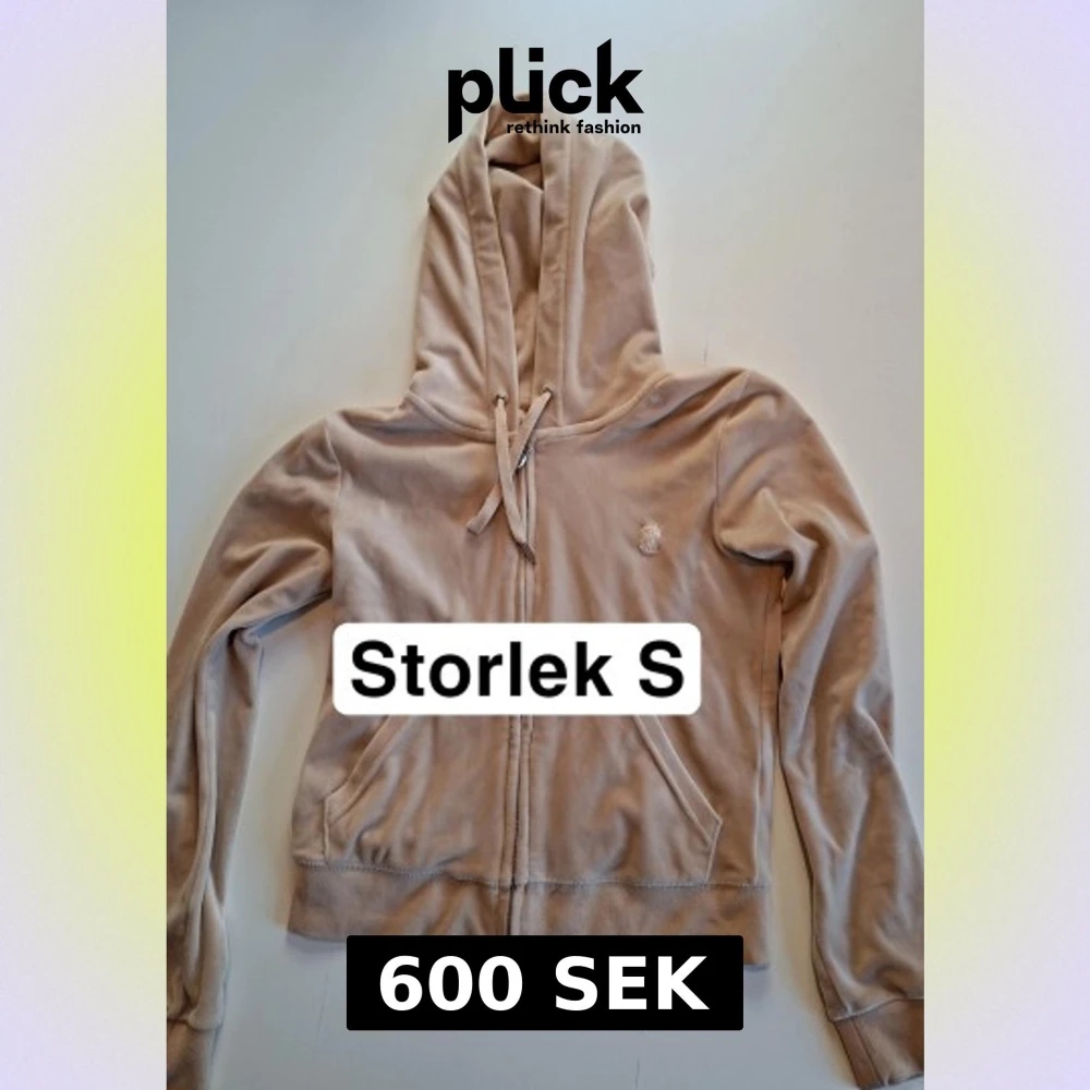 Ett beige fint Juicy cotoure set. Tröja storlek S, den är i fint skick! Byxorna är i storlek XS, byxorna har några små små fläckar men det stör inte helheten och dem är lite noppriga i midjan men hela settet är generellt i bra skick🙏🏽 kan skicka bättre bilder om du vill ha det😁 postar samma dag som köp sker ❤️ djur och rökfritt hem 🥰
