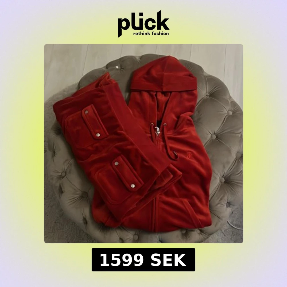Säljer en snyggt Juicy sett med hoodie med dragkedja och huva. Den har långa ärmar och en croppad passform. Perfekt och bekvämt 😇❤️