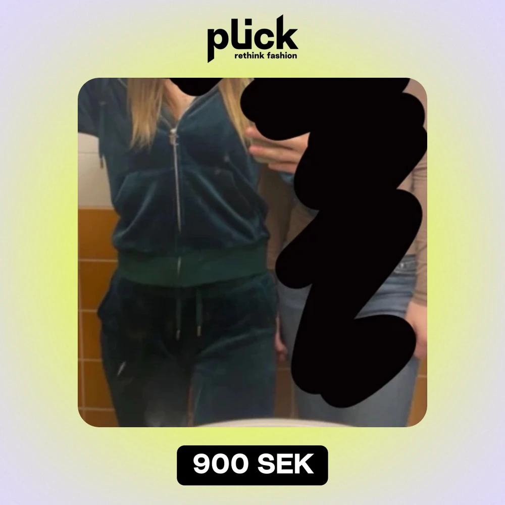 Jätteskönt fint mörkgrönt juicy set. Byxorna- strl Xs, Kofta- strl M - ena knappen på byxan har lossnat en gång men det gick att bara sätta fast den igen. Man kan köpa endast en av delarna eller hela setet❤️ hör av vid frågor eller prisdiskussion