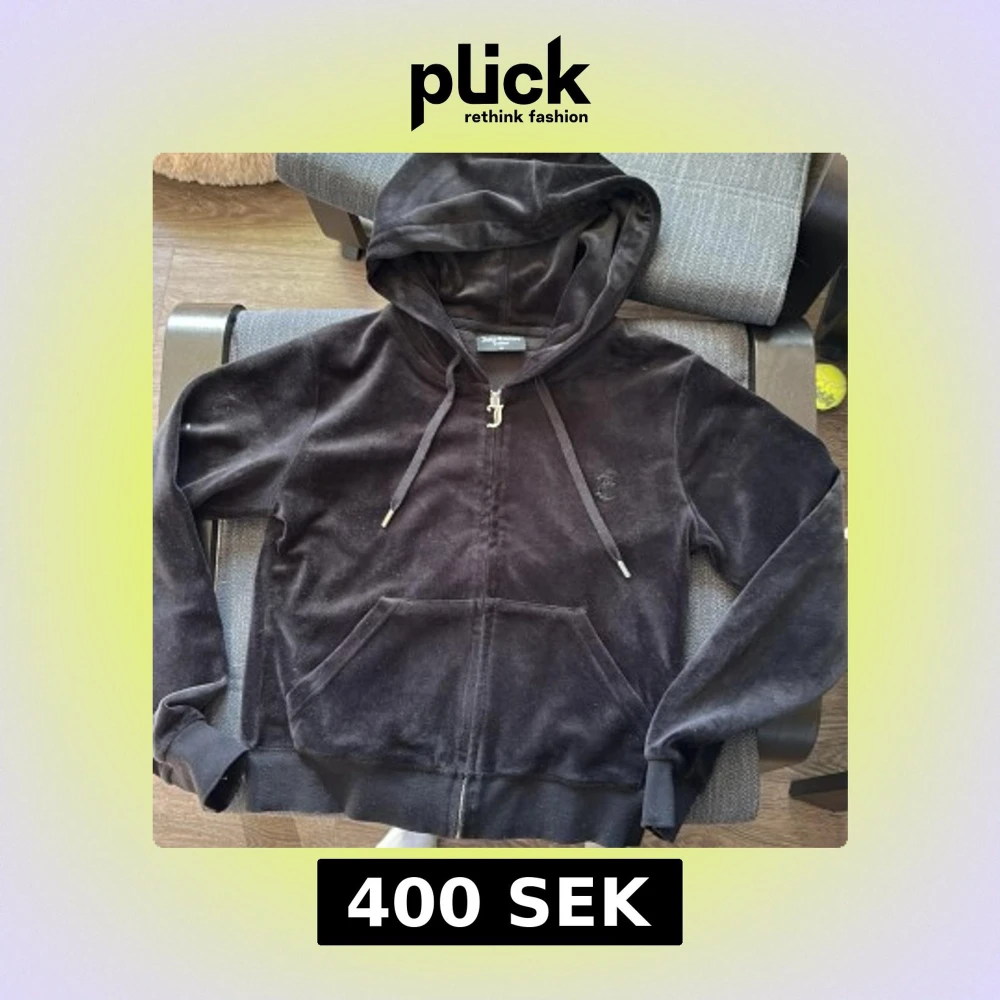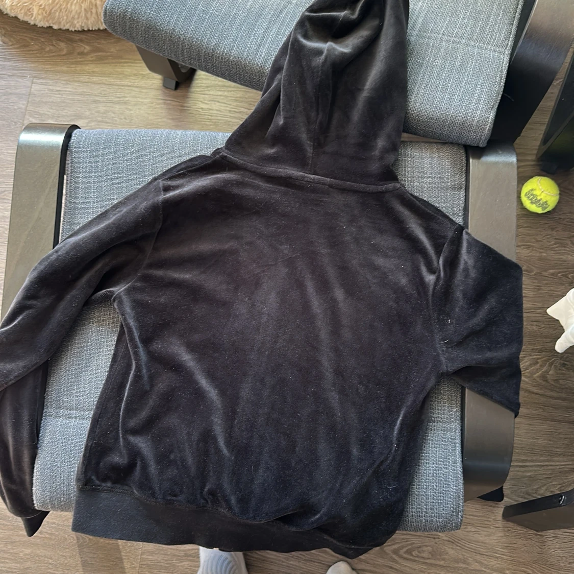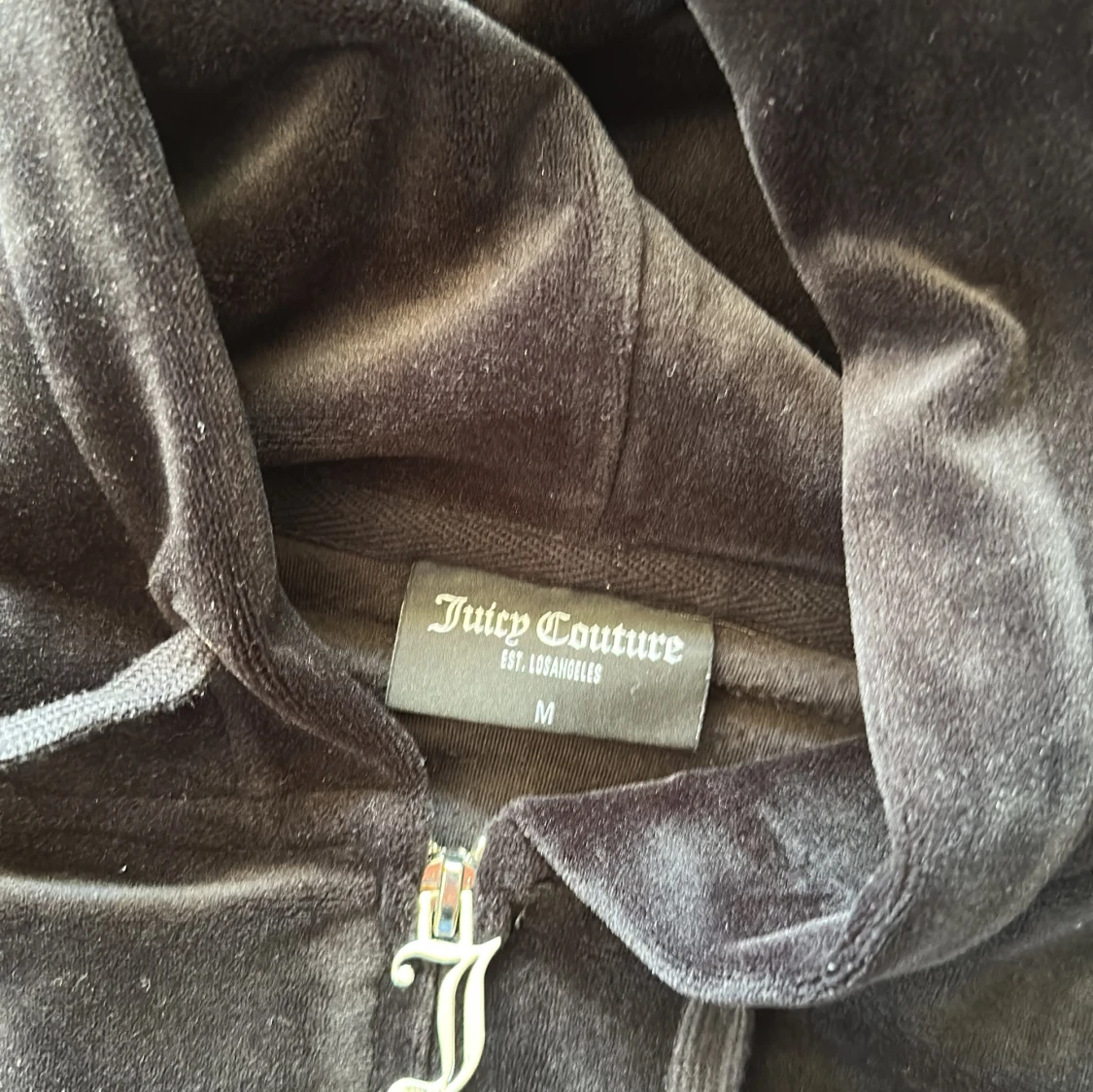 Säljer en svart velour hoodie från Juicy Couture med dragkedja och huva. Tröjan har en klassisk design med ribbade muddar och en praktisk ficka framtill. Perfekt för en avslappnad stil. 😊 pris går att diskuteras.
