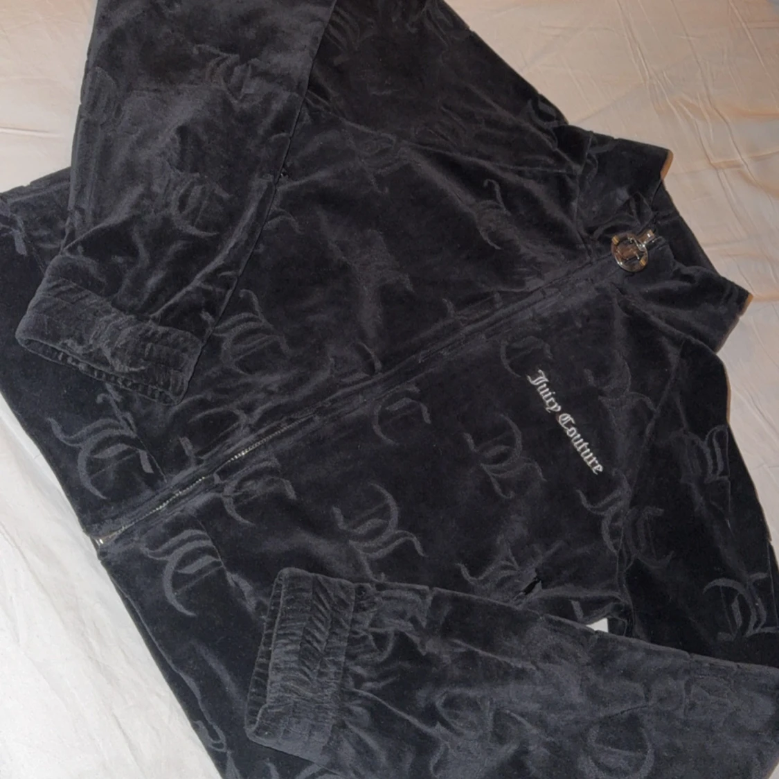 Snygg svart velourjacka från Juicy Couture med dragkedja och broderad logga på bröstet. Storlek M kort modell. Aldrig använd!