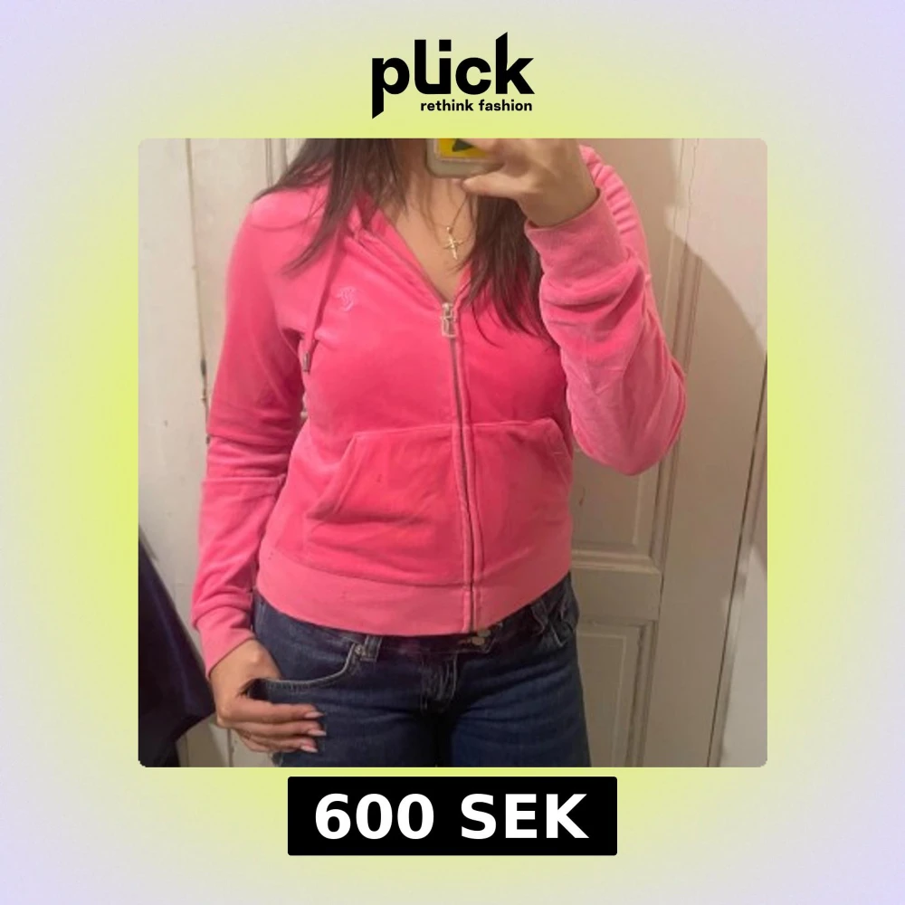 Säljer en ikonisk rosa hoodie från Juicy Couture i mjuk velour. Tröjan har dragkedja framtill, huva och broderad logga på bröstet.